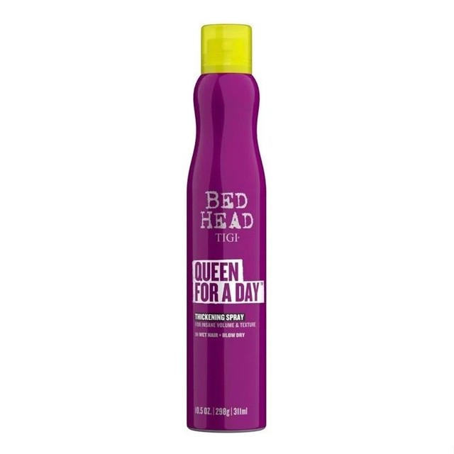 PRODUTO 100% ORIGINAL TIGI Bed Head Queen for a Day Spray Texturizador 311ml TIGI Bed Head Queen for a Day é um spray volumador. Seu cabelo ganha corpo e densidade que duram por muito tempo! Sinta-se uma rainha e brilhe como uma superstar! TIGI Bed Head Queen for a Day dá corpo e volume na medida para os seus fios ganharem movimento e brilho intenso. Conselho de Aplicação Aplique o spray diretamente na raiz e estilize como desejar. Para um efeito mais poderoso, passe-o por todo o cabelo. Resultado Seu cabelo com volume, corpo e densidade que dão um movimento incrível aos fios. E mais: acabamento luminoso que rouba olhares por onde você passa.
