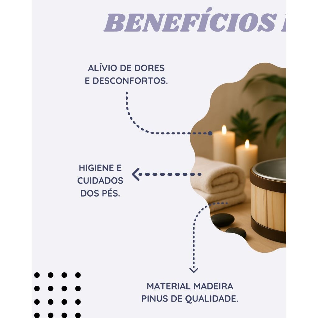 Desfrute de um luxo revitalizante e um alívio profundo para seus pés cansados com nossa Tina Escalda Pés feita de madeira de pinus de alta qualidade. Projetada para proporcionar uma experiência de spa em casa, esta tina combina elegância rústica com funcionalidade moderna. Itens inclusos : 10 Bolinhas Massageadoras 1 Sachê Escalda Pés (Sal e Ervas) 10 Mini Lixas 4 Protetores de Bacia Escalda Pés Especificações Técnicas: * Material: Madeira de Pinus, Bacia: 100% Alumínio * Capacidade: 9 Litros Dimensões: * Medida Externa 32x32cm e altura de 18cm * Medida Interna 29,5x29,5cm e altura de 15cm * Cabe confortavelmente dois pés até a numeração 41cm Benefícios: * Estimula a circulação sanguínea nos pés e pernas. * Ajuda a reduzir o inchaço e a retenção de líquidos. * Promove relaxamento e bem-estar geral. * Contribui para uma noite de sono tranquila e reparadora. Características Principais: * Material Premium: Fabricada com madeira de pinus resistente e durável, conhecida por sua beleza natural e longevidade. * Design Ergonômico: A forma ergonômica da tina se adapta perfeitamente aos contornos dos pés, proporcionando conforto máximo durante o uso. * Alívio Terapêutico: A Tina Escalda Pés é ideal para aliviar dores e tensões nos pés após um longo dia de trabalho, exercício físico ou atividades extenuantes. * Fácil de Usar: Basta encher a tina com água quente e adicionar óleos essenciais ou sais de banho para uma experiência ainda mais relaxante. Conteúdo da Embalagem: 1x Tina Escalda Pés de Madeira Pinus