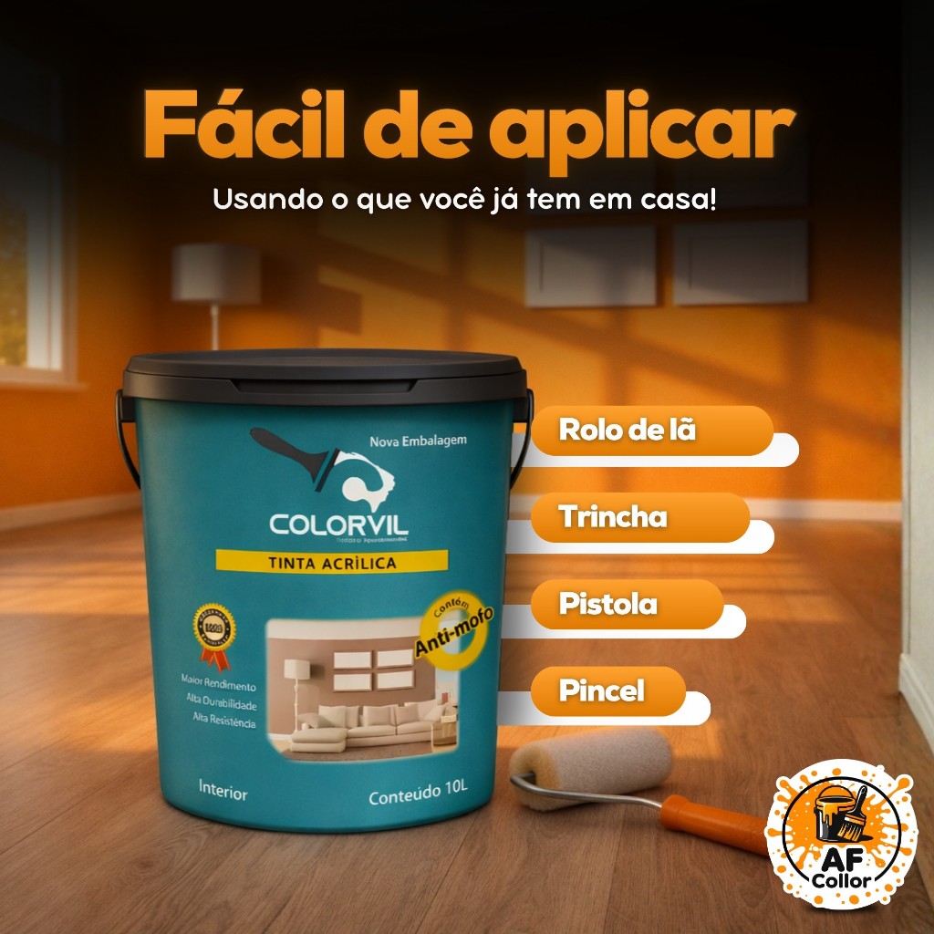 Colorvil – Tinta Interna A Colorvil é a solução definitiva para infiltrações e umidades, proporcionando máxima proteção e durabilidade para suas superfícies. >> ATENÇÃO: VENDEMOS 3 LITRAGENS DIFERENTES, FAVOR SE ATENTAR NO MOMENTO DA COMPRA << ✅ Uso Interno Formulada com tecnologia avançada. 🔹 Disponível em diversas cores 🔹 Embalagem de 3,6 kg – cobertura de até 35m² por demão 🔹 Disponível em diversas cores 🔹 Embalagem de 13 kg – cobertura de até 100m² por demão 🔹 Disponível em diversas cores 🔹 Embalagem de 22 kg – cobertura de até 200m² por demão Onde Aplicar A Colorvil pode ser aplicada em diversas superfícies, incluindo: ✔ Reboco ✔ Massa corrida ou acrílica ✔ Gesso e Drywall ✔ Concreto e Fibrocimento ✔ Telhados e coberturas (incluindo telhas zincadas ou galvanizadas) ✔ Áreas com manchas de gordura, graxa ou mofo (necessário limpeza adequada antes da aplicação) Para outras superfícies ou dúvidas, entre em contato com nosso Serviço de Atendimento ao Cliente (SAC) para orientações detalhadas. Como Aplicar Para garantir máxima aderência e qualidade, siga a Norma ABNT NBR 13.245 e certifique-se de que a superfície esteja: ✔ Limpar: livre de poeira, gordura, óleo e qualquer substância que comprometa a aderência. ✔ Seca: sem umidade excessiva. ✔ Lixada: especialmente em superfícies previamente pintadas ou irregulares. ✔ Isenta de contaminantes: sem ferrugem, partículas soltas ou restos de pintura antiga. 1. Preparação da Superfície ✅ Reboco, Concreto e Fibrocimento: devem estar limpos, secos e nivelados. ✅ Superfícies com Imperfeições: corrigir fissuras e irregularidades com massa apropriada antes da aplicação. ✅ Telhados e Coberturas: remover resíduos de óleo, gordura e corrosão. ✅ Superfícies Metálicas: lixar para remover ferrugem e impurezas. ✅ Gesso e Drywall: aplicar um fundo preparador antes da tinta. ✅ Áreas com Gordura, Graxa ou Mofo: lavar bem com detergente ou água sanitária e aguardar a secagem. 2. Ferramentas Indicadas 🛠 Rolo de lã baixa 🛠 Rolo de textura 🛠 Brocha, pincel ou trincha 🛠 Pistola para pintura e airless 3. Diluição Correta Para garantir uma aplicação uniforme, siga a diluição recomendada: 🟡 1ª demão: Pronto para uso. 🟡 Demais demãos: Pronto para uso. Misture bem a Colorvil antes e durante o uso para manter a consistência homogênea. 4. Tempo de Secagem ⏳ Ao toque: cerca de 2 horas ⏳ Entre demãos: 3 a 4 horas ⏳ Cura completa: 72 horas (após esse período, o efeito hidrorepelente será totalmente ativado) Para melhores resultados, aplique em temperaturas entre 16°C e 40°C, evitando dias muito úmidos ou chuvosos. 5. Rendimento (2 a 3 demãos) 📏 Estimativa de cobertura: 2 demão ✔ 13 kg podem cobrir até 100m² por demão O rendimento pode variar conforme a superfície e a técnica de aplicação. 🏡 Proteja e impermeabilize com a qualidade Colorvil!