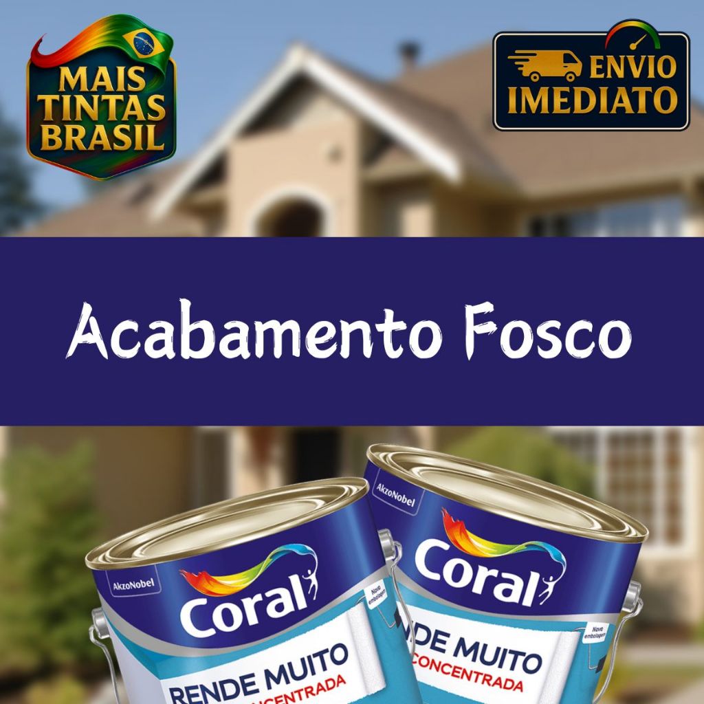 Tinta Acrílica Coral Rende Muito 3,2L e 3,6L – Interior e ExteriorA Tinta Acrílica Coral Rende Muito é a escolha perfeita para quem busca alto rendimento, economia e acabamento de qualidade profissional.Sua fórmula concentrada, com resinas acrílicas premium, garante excelente cobertura, fácil aplicação e resistência à água, podendo ser usada tanto em ambientes internos quanto externos.Disponível nas versões 3,2L (cores) e 3,6L (branco), a Coral Rende Muito oferece baixo odor, secagem rápida e um acabamento fosco uniforme, que disfarça pequenas imperfeições e deixa os ambientes mais bonitos por muito mais tempo.Especificações Técnicas🔹 Coral Rende Muito 3,2L (Cores)Uso: Interno e externoAcabamento: FoscoCor: Diversas coresDiluição: 1 parte de tinta para 2 partes de água limpa (1:2)Rendimento: até 120 m²/demão após diluição correta (pode variar conforme a superfície)Demãos: 2 a 3 | intervalo: 4hSecagem: toque 1h | entre demãos 4h | final 12hOdor: SuaveAplicação: Rolo de lã de pelo baixo, pincel ou pistola🔹 Coral Rende Muito 3,6L (Branco)Uso: Interno e externoAcabamento: FoscoCor: BrancoDiluição: 1 parte de tinta para 2 partes de água limpa (1:2)Rendimento: até 120 m²/demão após diluição correta (pode variar conforme a superfície)Demãos: 2 a 3 | intervalo: 4hSecagem: toque 1h | entre demãos 4h | final 12hOdor: SuaveAplicação: Rolo de lã de pelo baixo, pincel ou pistolaPor que escolher Coral Rende Muito? Rendimento superior com diluição até 2x Baixo odor e mínimo respingamento Acabamento fosco que disfarça imperfeições Ideal para ambientes internos e externos Fácil aplicação e secagem rápida Produto original Coral com qualidade garantidaOnde usarParedes internas e externasTetos e paredes de salas, quartos, cozinhas, banheiros e áreas de serviçoAmbientes residenciais e comerciaisDicas de AplicaçãoCertifique-se de que a superfície esteja firme, limpa e seca.Evite pintar em dias chuvosos ou com umidade acima de 85%.Utilize luvas, máscara e óculos de proteção durante a aplicação.Lixe levemente entre as demãos para melhor acabamento.Limpe as paredes apenas 30 dias após a pintura, com esponja macia e detergente neutro.Perguntas FrequentesAcompanha nota fiscal? Sim, todos os produtos são enviados com nota fiscal.Posso comprar mais de 1 unidade no mesmo pedido?🚚 Para embalagens de 3,2L e 3,6L, é permitido comprar até 4 unidades por pedido, devido às limitações de transporte. Para adquirir mais, é necessário realizar novos pedidos.O envio é por Correios? O envio é realizado pela transportadora da Shopee, garantindo segurança e agilidade na entrega.👉 Garanta já sua Tinta Acrílica Coral Rende Muito 3,2L ou 3,6L e conquiste ambientes com acabamento fosco perfeito, alta cobertura e rendimento excepcional! (Tinta, Acrílica, Coral, Rende Muito, Econômica, 3,2L, 3,6L, Branco, Secagem Rápida, Parede, Sala, Quarto, Cozinha, Banheiro)