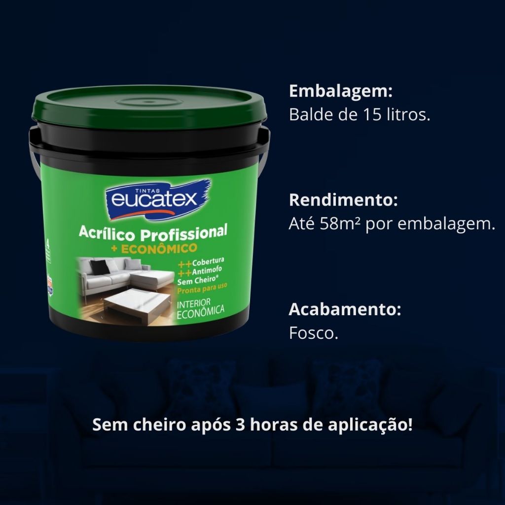 Tinta Acrílica Econômica Profissional Eucatex 15 Litros Fosca, Interna, AntiMofo, Várias Cores