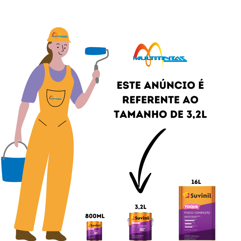 TONS DE VERDE!Se você quiser outro tom de verde que não está no anúncio ou tamanho da tinta diferente, nos mande uma mensagem!**Suvinil Toque Fosco Completo disfarça as imperfeições na parede e te entrega um acabamento com qualidade superior. Ela tem uma cobertura impecável, com acabamento fosco. A tinta é resistente e pode ser feita em todas as cores do catálogo Suvinil para você se apaixonar pela sua casa. Essa é a tinta completona da Suvinil, a melhor tinta do mercado! Seu alto poder de cobertura permite que você renove a casa de um jeito rápido e prático com menos demãos. E mais, sem sujeira após a aplicação graças a tecnologia antirrespingo. Ela também é lavável, sem cheiro em até 4 horas após a aplicação, com longa durabilidade e seu acabamento fosco não revela imperfeições.-Secagem:Ao toque: 2 horasEntre demãos: 4 horasFinal: 12 horas-Rendimento acabado:Até 27m²-Quantidade necessária de demãos:2 a 3-Diluição:Primeira pintura sobre massa corrida, acrílica, drywall e gesso: dilua com 20% de água potável. Repintura, concreto, blocos de concreto, fibrocimento, texturas e reboco: diluir com 20% de água potável. Para aplicação com airless dilua com 20% de água potável por litro e aplique com pressão entre 1200 e 1400 psi. Use bico com abertura de 0,017” e a velocidade de aplicação entre 9 e 11 m2/min*OBSA cor exibida em sua tela é apenas uma referencia da cor real do produto. A cor real pode sofrer variação de tonalidade com relação a sua tela de exibição por se tratar de reprodução em meio virtual.