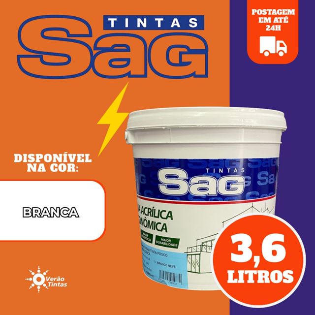 🎨 Tinta Acrílica Interna SAG Branco 3,6L Ideal para paredes internas como reboco, massa corrida, gesso, concreto e repintura. Fácil de aplicar, acabamento fosco e boa cobertura. ✔️ Rende até 22m² ✔️ Diluição: até 20% de água ✔️ Secagem rápida: toque em 2h ✔️ Aplicação com rolo, pincel ou trincha Perfeita para renovar ambientes internos com ótimo custo-benefício.