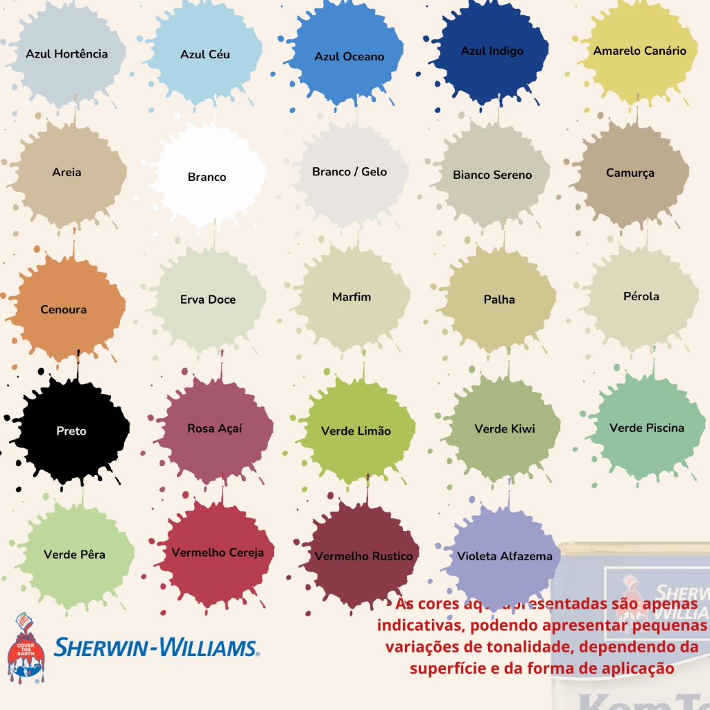 Tinta Acrílica Kemtone Sherwin Williams Antimofo P/ Parede Alto Rendimento Lata 18 Litros - Cores