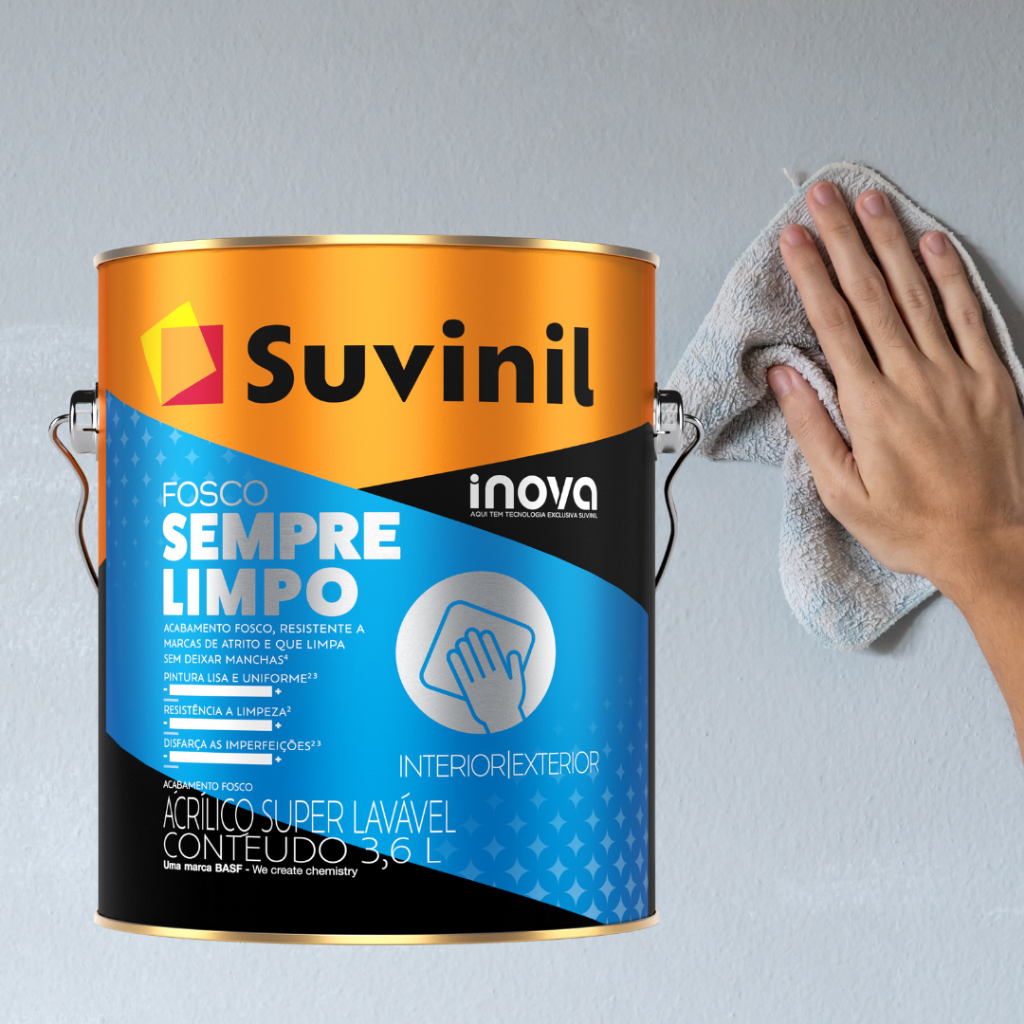 Ideal para quem busca praticidade e durabilidade, essa tinta acrílica proporciona um acabamento fosco sofisticado e fácil de limpar, garantindo que suas paredes estejam sempre impecáveis. Com Suvinil, você tem a certeza de um produto de qualidade superior, perfeito para qualquer ambiente da sua casa ou escritório. A tinta Inova Fosco Sempre Limpo é resistente às manchas e sujeiras do dia a dia, graças à sua exclusiva tecnologia Sempre Limpo. Além disso, ela é super lavável, o que facilita a manutenção e prolonga a beleza das suas paredes. Sua fórmula especial também oferece alta cobertura e rendimento, permitindo uma aplicação uniforme e eficiente. Indicada para pintura de superfícies de reboco, massa acrílica, texturas, concreto, fibrocimento e superfícies internas de massa corrida, drywall e gesso. Tipo de Tinta: Acrílico Acabamento: Fosco Cor: Branco Número de demãos: 2 a 3 Secagem: Ao toque: 2 horas Entre demãos: 4 horas Final: 12 horas Rendimento Acabado: 24m² Para aplicar, use: Rolo de Lã com pelos médios ou curtos e trincha