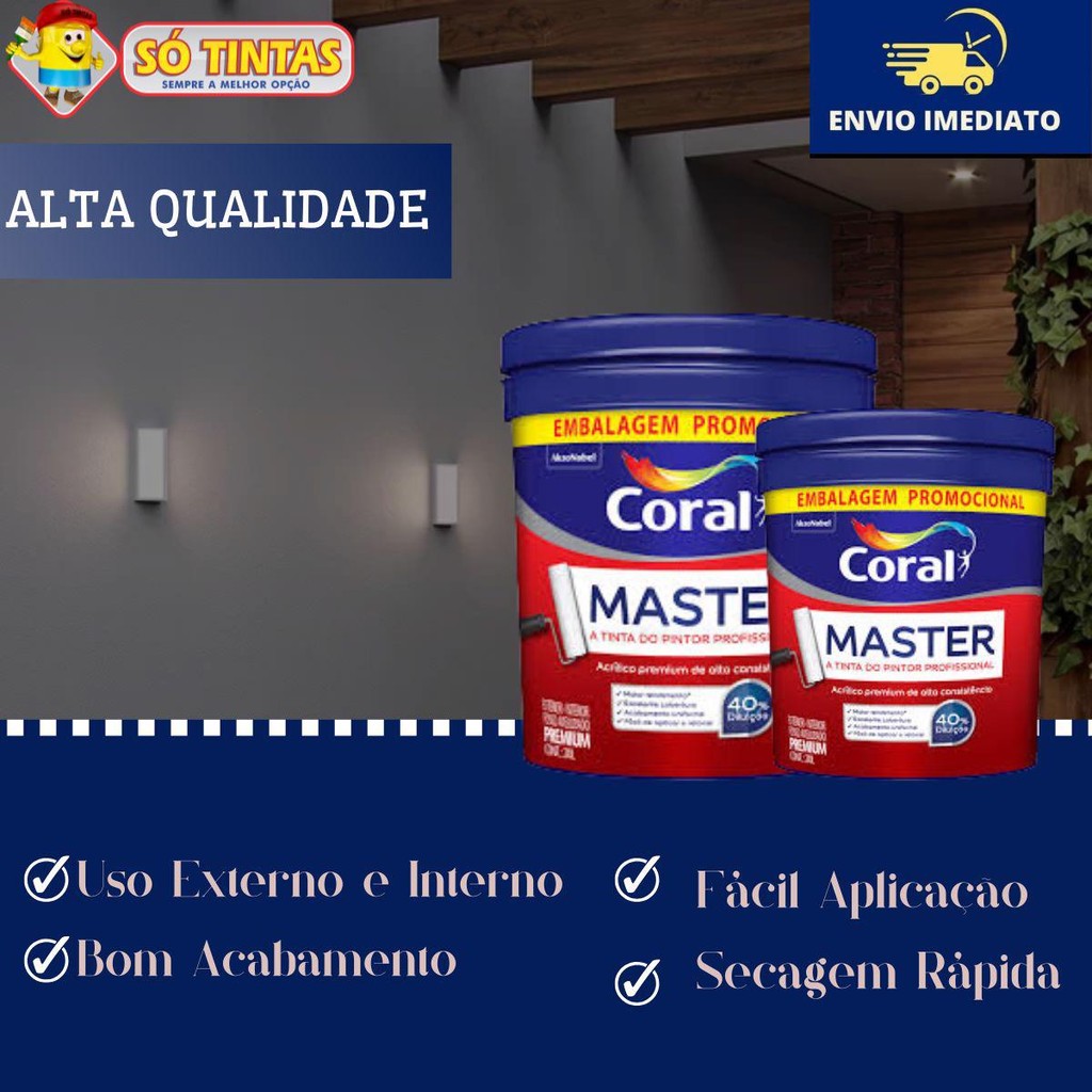 A Tinta Acrílica Coral Master é a escolha definitiva para profissionais que desejam um acabamento impecável e duradouro. Com sua fórmula avançada, esta tinta oferece alta performance e versatilidade para todas as suas necessidades de pintura, tanto em ambientes internos quanto externos. Imagine transformar qualquer superfície em um espaço deslumbrante e acolhedor. Com a Tinta Acrílica Coral Master, você garante: •Acabamento Fosco Aveludado: Resultados que impressionam e elevam a estética do ambiente. •Secagem Rápida: Em apenas 30 minutos, você pode tocar e continuar seu trabalho, aumentando a eficiência do seu projeto. A Tinta Acrílica Coral Master é formulada para eliminar esses problemas. Aqui está como ela se destaca: •Diluição Flexível: Dilua até 40% com água, permitindo maior rendimento sem comprometer a qualidade. •Fácil Aplicação: Ideal para profissionais, sua consistência facilita o trabalho e permite retoques rápidos. •Versatilidade em Superfícies: Aplique em alvenaria, gesso e blocos de concreto com total confiança. Benefícios: •Eficiência Superior: Menos demãos necessárias, mais economia. •Acabamento Impecável: Acabamento profissional que garante a satisfação do cliente. •Durabilidade e Resistência: Fórmula desenvolvida para resistir ao desgaste do tempo, mantendo a beleza da pintura. Dados Técnicos Produto: Tinta Acrílica Coral Master Volume: 20 Litros Tipo: Tinta Acrílica à Base de Água Acabamento: Fosco Aveludado Rendimento: •Até 155 m² por lata (dependendo da superfície e método de aplicação). Diluição: •Diluição de até 40% com água potável. Tempo de Secagem: •Toque Seco: 30 minutos •Entre Demãos: 4 horas •Secagem Final: 4 horas Aplicações: •Superfícies de alvenaria •Gesso •Blocos de concreto •Áreas internas e externas Composição: •Base: Resinas acrílicas •Pigmentos: Não tóxicos, de alta resistência à luz •Solvente: Água Características: •Alta consistência e viscosidade •Excelente cobertura e acabamento uniforme •Fácil aplicação e retoque •Secagem rápida Aplicação: Passo a Passo: 1. Preparação da Superfície: o Limpe a área a ser pintada, removendo poeira, sujeira, gordura e resíduos. o Se necessário, lixe superfícies irregulares para garantir um acabamento liso. o Aplique uma seladora se a superfície for porosa ou muito absorvente. 2. Diluição da Tinta: o Misture a tinta com água potável, respeitando a proporção de até 40% de diluição. o Utilize um misturador ou uma ferramenta adequada para garantir uma mistura homogênea. 3. Aplicação: o Use ferramentas apropriadas (rolos, pincéis ou pistolas) para a aplicação. o Aplique a primeira demão de forma uniforme, começando pelos cantos e áreas mais difíceis. o Aguarde cerca de 4 horas para a secagem entre demãos. 4. Repetição: o Aplique de 2 a 3 demãos, conforme necessário, para garantir a cobertura desejada. o Entre cada demão, verifique se a superfície está completamente seca antes de prosseguir. 5. Toque Final: o Após a última demão, aguarde 4 horas para a secagem completa. o Faça retoques, se necessário, para corrigir imperfeições. Só Tintas, sempre a melhor opção. Somos a maior rede de lojas de tintas no estado do Rio de Janeiro. Desde 1977, a Só Tintas atua no Rio de Janeiro oferecendo os melhores produtos e soluções em pintura imobiliária, automotiva e industrial. Somos uma empresa familiar que começou em Teresópolis e hoje temos mais de 30 lojas físicas. Trabalhamos de forma ética e transparente, com o principal objetivo de proporcionar aos nossos clientes um atendimento de excelência, provendo as melhores soluções. Nossa missão é levar cor para a vida das pessoas. Por isso a Só Tintas é Sempre a Melhor Opção