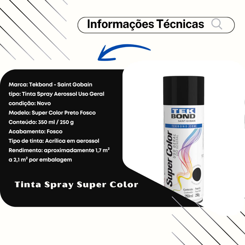 Tinta Aerossol Preto Fosco Uso Geral350ml Spray Color Tek Bond