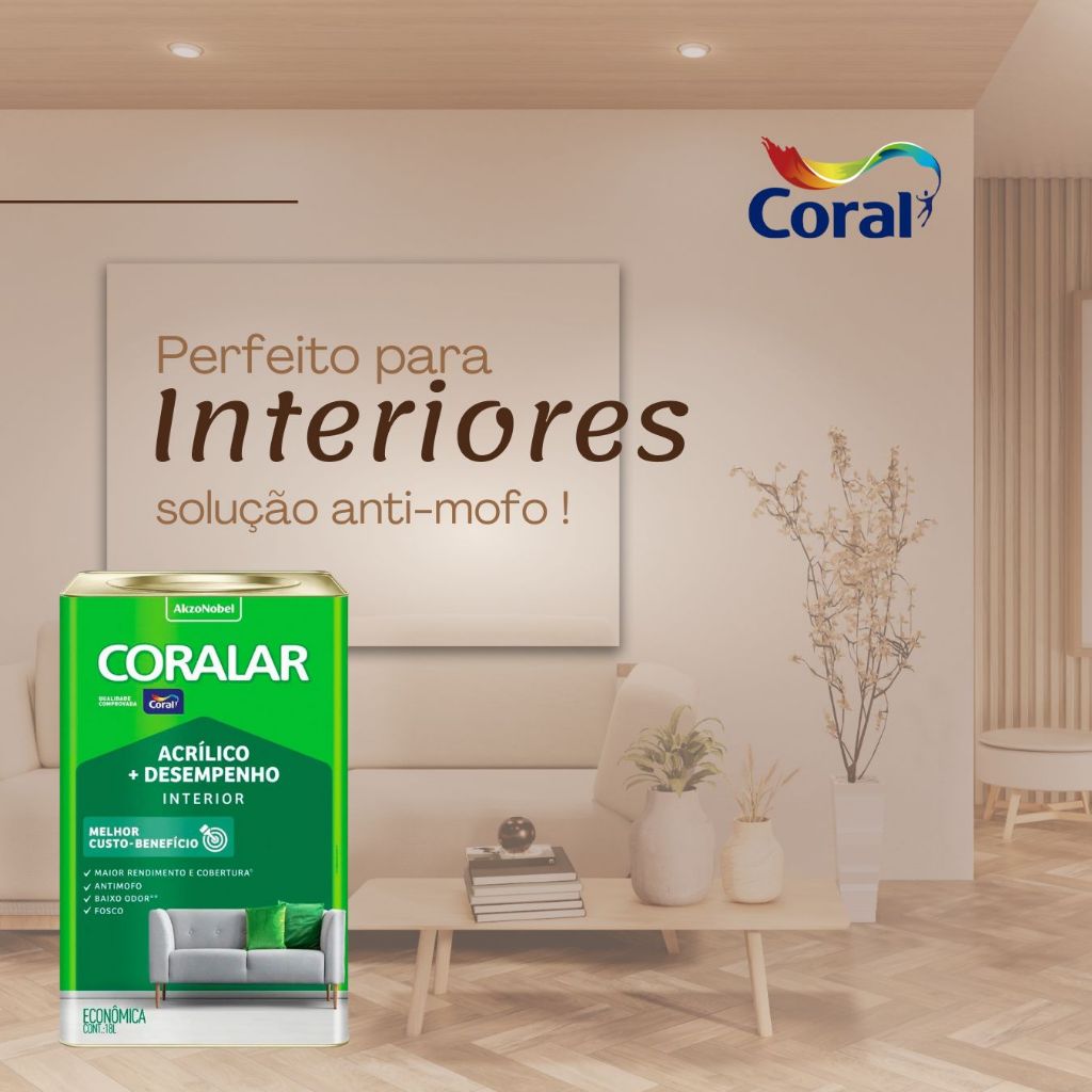 Tinta Anti Mofo Coralar Acrílica Fosco 18l ..................................................................................................................................... INFORMAÇÕES SOBRE O PRODUTO ..................................................................................................................................... Coralar acrílica + desemprenho é a tinta econômica que proporciona o melhor custo-benefício. - Possui maior rendimento e cobertura, além de ser antimofo e possuir baixo odor. - Rende até 90 m² acabados por embalagem de 18L. ..................................................................................................................................... ESPECIFICAÇÕES DO PRODUTO ..................................................................................................................................... ATENÇÃO: - 1 LATA DE CADA VEZ E DEPOIS FAÇA O PAGAMENTO TOTAL. - Será enviado no máximo 1 lata de 18L por motivo de peso limite da transportadora. ESPECIFICAÇÃO TÉCNICA: - Fabricante: Coral; - Cor Disponível: Branca, Dia nublado, lua do sertão, Pêssego e Verde timbala. - Acabamento: Fosco; - Para Áreas Internas em Alvenaria; - Baixa Emissão de CO²; - Rendimento por demão: 100m²; - Ótima Resistência; - Anti mofo; - Conteúdo: 18 Litros. APLICAÇÃO: Misture bem a tinta antes de pintar; Diluente: Água; Diluição: Em superfícies não seladas, adicione 50% de água potável e 1 parte de tinta. Para as outras demãos e demais superfícies, adicione de 10 a 20% de água potável e 1 parte de tinta. Normalmente, com 2 ou 3 demãos, você já consegue um excelente resultado.Mas dependendo do tipo e estado da parede e da cor, pode ser que você precise de mais demãos. Acessórios de Pintura: Rolo de lã de pelo baixo ou pincel de cerdas macias; Entre demãos: 4 horas; Secagem: 30 min; Limpeza: Limpe as ferramentas com água e sabão. OBSERVAÇÕES: A cor da tinta pode ter uma leve diferença de tonalidade em comparação à foto. Praticamente imperceptível. Se sua parede está com algum problema como umidade, descascamento, fissuras, manchas, bolor, mofo, etc... Contrate um profissional para resolver o problema antes da pintura. RECOMENDAÇÕES: Evite a aplicação em dias chuvosos, temperatura abaixo de 10º C ou acima de 40º C e umidade relativa do ar superior a 85%. MANTENDO O VISUAL: Limpe a superfície utilizando pano ou esponja macia umedecida com água e detergente neutro sem esfregar. SAÚDE E SEGURANÇA: Durante a preparação, aplicação e secagem do produto, mantenha o ambiente ventilado. É recomendado usar luvas e óculos de segurança na hora de pintar. IMPORTANTE: O valor é referente a unidade (Lata de 18L). Não nos responsabilizamos pela má instalação ou mau uso do produto, para evitar transtornos procure um profissional especializado. As cores podem sofrer variações de acordo com o tipo, configuração e resolução do seu aparelho. Considere apenas como uma referência. Para uma visualização mais precisa, consulte o catálogo do produto disponível em lojas e, sempre que possível, faça um teste no local a ser pintado utilizando uma pequena quantidade de tinta na cor escolhida. ..................................................................................................................................... DÚVIDAS FREQUENTES ..................................................................................................................................... Pergunta: Como é embalado o produto? Resposta: Todos os nossos produtos vendidos são embalados em caixas lacradas ou plástico stretch. Em respeito ao meio ambiente 90% das caixas são reutilizadas. Pergunta: Quem faz a entrega? Resposta: A entrega é terceirizada, feita via CORREIOS ou TRANSPORTADORA. Pergunta: O envio é feito em quantos dias? Resposta: Nós enviamos o seu pedido no prazo máximo de 24 horas após a confirmação de sua compra, sendo um dos envios mais rápidos da plataforma. Pergunta: Os produtos são novos ou usados? Resposta: Todos os produtos que trabalhamos são novos e com qualidade garantida. .....................................................................................................................................
