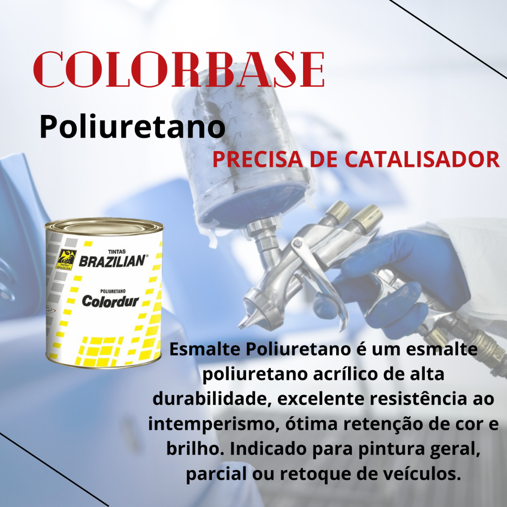 COLORDUR – ESMALTE POLIURETANO BRAZILIAN 675ML ====================================== INFORMAÇÕES SOBRE O PRODUTO ====================================== Colordur – Esmalte Poliuretano é um esmalte poliuretano acrílico de alta durabilidade, excelente resistência ao intemperismo, ótima retenção de cor e brilho. Indicado para pintura geral, parcial ou retoque de veículos. ====================================== Atributos: ====================================== •Alto rendimento, Excelente resistência ao intemperismo, ótima retenção de cor e brilho. Ambiente: Exterior •3 partes (vol.) de tinta para 1 parte (vol.) de catalisador cód. 0.004.83 •Adicionar 10 a 20% de Diluente para PU cód. 0.001.83 sobre a mistura. Consumir em 3 horas Aplicação: Pintura geral ou parcial de veículos automotivos. Testar a cor antes de aplicar sobre o veículo. Regular a pressão do ar entre 40-50 lbs/Pol², aplicar de 2 a 3 demãos com intervalo de 5 a 10 minutos. ====================== LOJA ====================== - O grupo Soluwan possui loja física e online a mais de 29 anos satisfazendo nossos clientes. - Vendemos somente produtos novos e de qualidade garantida. - Despachamos em 24 horas - Entregamos para todo o BRASIL. #Colordur #BRAZILIAN #Automotivo #Massarapida #POLIURETANO #Tintaautomotiva #EsmaltePOLIURETANO #Pinturaautomotiva #Colordurbrazilian #Tintacolordur #Repinturaautomotiva #Tintasbrazilian
