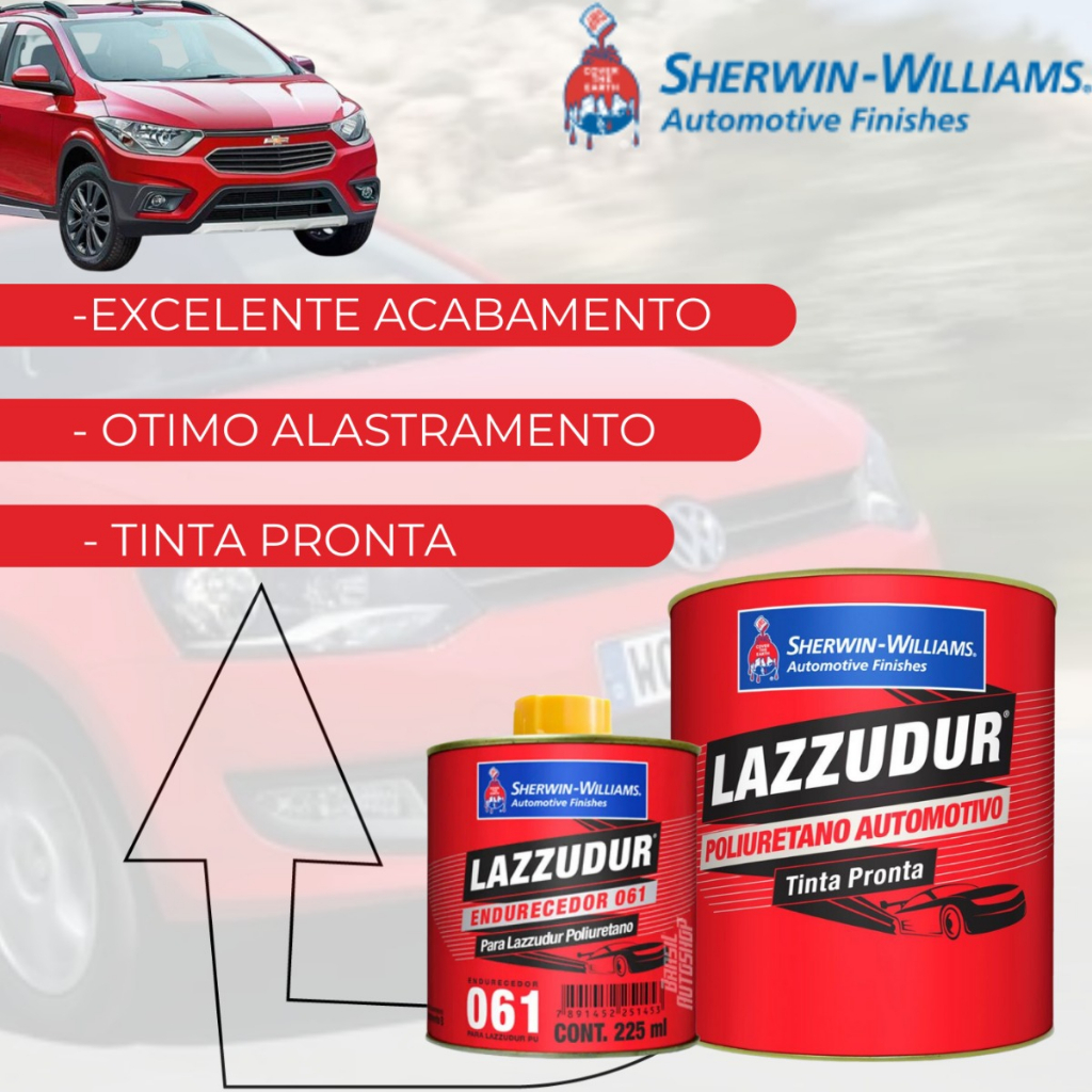 Tinta Automotiva PU Lazzudur 675ml Catalisador Endurecedor 061 225ml Sherwin Willians - Cores