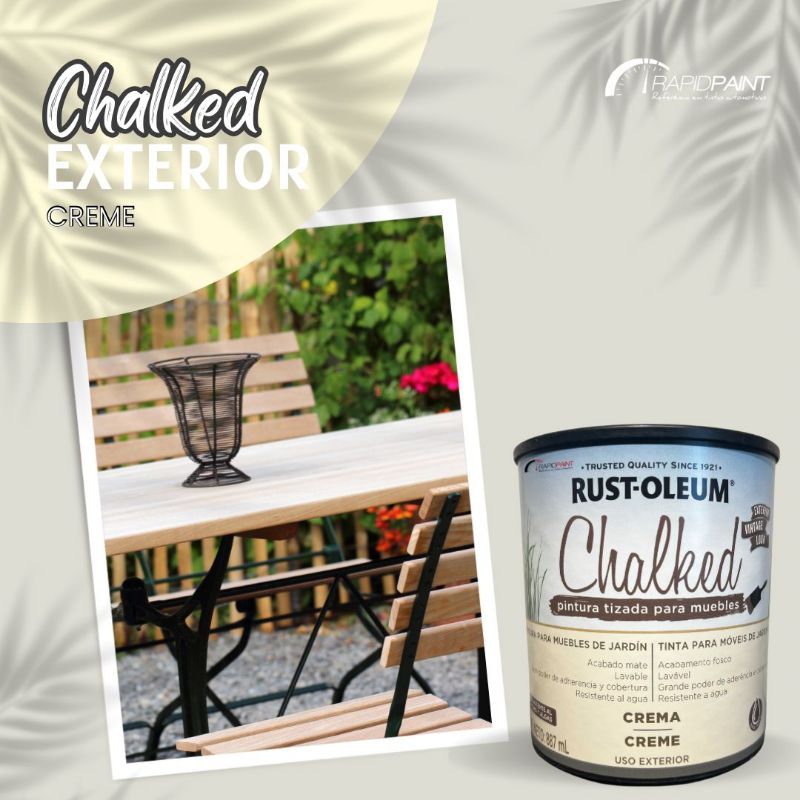 Chalked Exterior CREME "NOVA FORMULA" Rust Oleum a base de água para móveis de jardim com ACABAMENTO FOSCO. Tinta com Excelente Aderência em Multi-Superficies, GRANDE PODER DE ADERENCIA E COBERTURA,RESISTENTE A AGUA, LAVAVEL