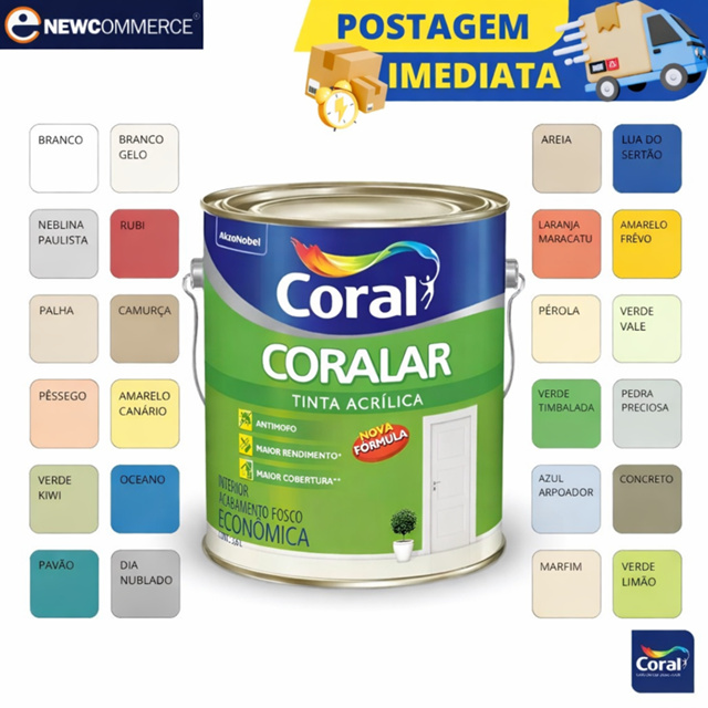 | Tinta Coralar Acrílica 3,6L - Escolha Sua Cor este produto | R$ 87,90 | 12% | 4.8/5 | 27 |