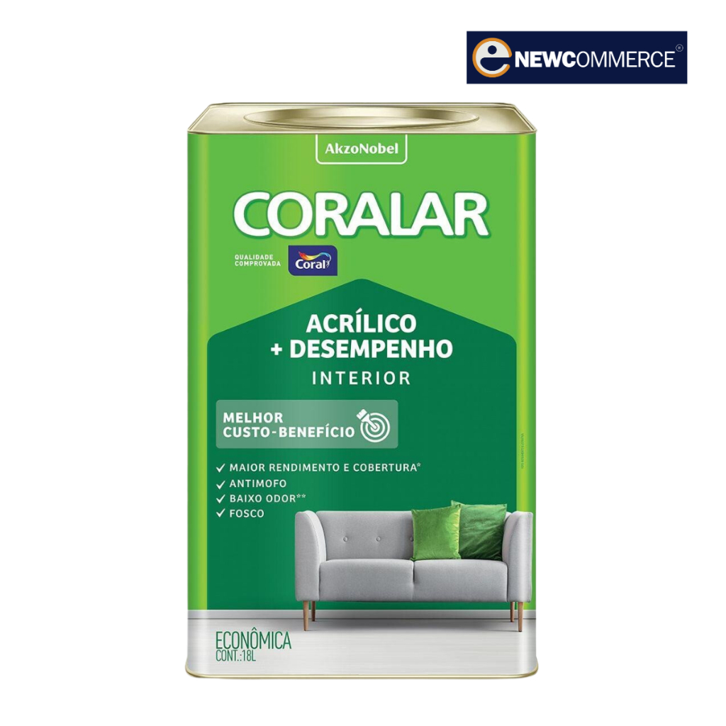 Bem-vindo ao Grupo NEWCommerce ! Sua loja online completa para tintas e materiais de construção! Transforme seus projetos de reforma em realidade com a nossa ampla variedade de produtos de alta qualidade, ótimos preços e um atendimento excepcional. DESCRIÇÃO DO PRODUTO: Com maior rendimento e cobertura em relação a fórmula anterior é de fácil aplicação, rápida secagem, mínimo respingamento e oferece bom acabamento e ação antimofo. Ferramenta de aplicação: Rolo de lã de pelo baixo, Pistola, Pincel ou Trincha Secagem: 30 min. ao toque; 4 h entre demãos; 4 h finais Demãos: No mínimo de 02 a 03 demãos. Obs: Pode ser passado externamente, porém a durabilidade será menor do que a indicada para o externo.Se for passar em cima de tinta esmalte é bom repintar ou tirar a tinta para depois passar a Coralar. ATENÇÃO: APENAS 1 LATA POR COMPRA DEVIDO AO LIMITE DE PESO. INFORMAÇÕES ADICIONAIS: Todos os produtos são 100% originais e de qualidade garantida. Todos os produtos possuem nota fiscal e garantia. Sua Melhor Experiência de Entrega, também é um compromisso nosso! Restou alguma dúvida? Entre em contato conosco para qualquer necessidade. Agradecemos por escolher a NEWCommerce. Muito obrigado!