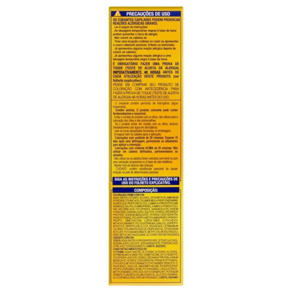 Tinta de Cabelo Cor&Ton Niely Preto 2.0 Principais Características - Cor Intensa e Duradoura: Proporciona uma cobertura uniforme, com coloração intensa e brilho radiante que dura por semanas. - Fórmula Nutritiva: Enriquecida com proteínas e óleos hidratantes que cuidam da saúde dos fios durante o processo de coloração. - Cobertura Total dos Fios Brancos: Garante excelente desempenho mesmo em cabelos com alta concentração de fios brancos. Benefícios - Realça a beleza dos cabelos com uma cor vibrante e aspecto saudável. - Protege os fios durante o processo de coloração, evitando ressecamento. - Fácil aplicação, com resultados profissionais no conforto de casa. Diferenciais do Produto - Acompanha sachê de tratamento pós-coloração que ajuda a manter a maciez e o brilho dos cabelos. - Tecnologia exclusiva que penetra profundamente nos fios, fixando a cor de forma eficaz. - Ideal para todos os tipos de cabelo, oferecendo uma experiência de coloração premium. Especificações Técnicas - Peso: 200g (aproximadamente, incluindo embalagem). Instruções de Uso - Misture o creme colorante com o revelador conforme as instruções da embalagem. - Aplique a mistura nos cabelos secos e desembaraçados, iniciando pela raiz. - Deixe agir pelo tempo indicado e enxágue com água morna. Finalize aplicando o tratamento pós-coloração. Avisos e Precauções - Realize o teste de mecha e o teste de alergia 48 horas antes de utilizar o produto. - Não aplique em couro cabeludo irritado ou lesionado. - Evite contato com os olhos; em caso de contato, enxágue imediatamente com água em abundância. - Mantenha fora do alcance de crianças. O que está incluso? - 1 bisnaga de creme colorante. - 1 frasco de emulsão reveladora. - 1 sachê de tratamento pós-coloração. - 1 par de luvas. - 1 folheto explicativo. ---- DÚVIDAS FREQUENTES ---- Os produtos são originais? Sim. Todos os nossos produtos são originais. Emitem nota fiscal? Sim. Emitimos nota fiscal para todos os pedidos.