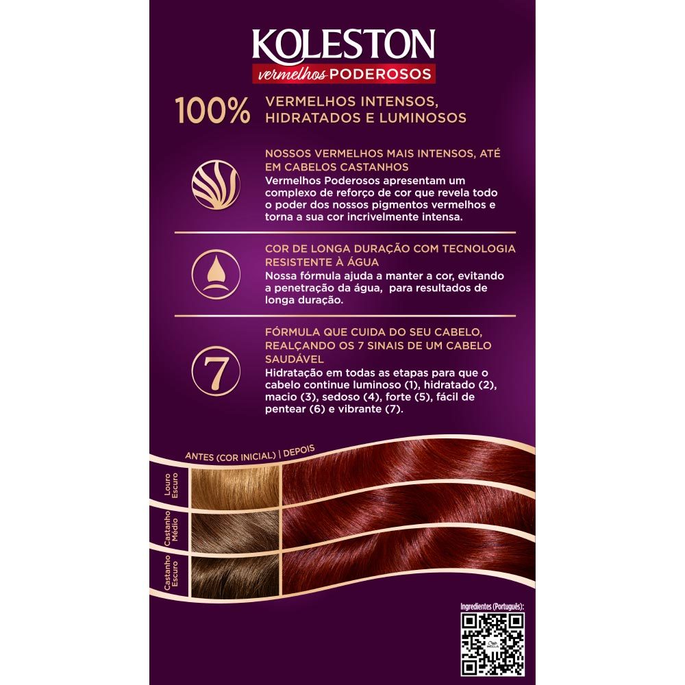 TINTURA CREME KOLESTON WELLA BORGONHA VIBRANTE 4446 Tintura creme Cor fascinante e brilho revitalizado Perfeita cobertura dos cabelos brancos Tenha uma nova experiência em coloração usando o novo Kole