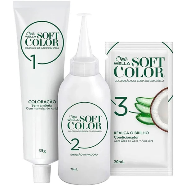 Soft color é a coloração que te dá reflexos com brilho radiante, 90% menos queda de fios e duração de até 29 lavagens. A fórmula da tinta de cabelo soft color não contém amônia e é compatível com cabelos quimicamente tratados. Além disso, possui ingredientes naturais como aloe vera, manteiga de karitê e óleo de coco, que garantem cuidado com seus cabelos, cobertura perfeita dos fios brancos e brilho por até 4 semanas. O kit contém um frasco com a coloração sem amônia, uma emulsão ativadora e um sachê de condicionador que realça o brilho. *Comparado a um cabelo não tratado com o condicionador do kit. Resultados podem variar de acordo com o tipo de cabelo.