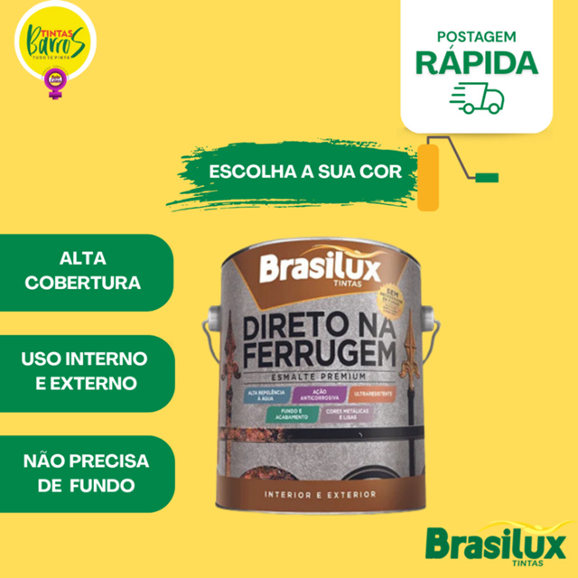 | TINTA DIRETO NA FERRUGEM ESM. SINT 900ML BRASILUX ( VARIAS CORES) | R$ 36,90 | — | 4.9/5 | 1.5 mil |