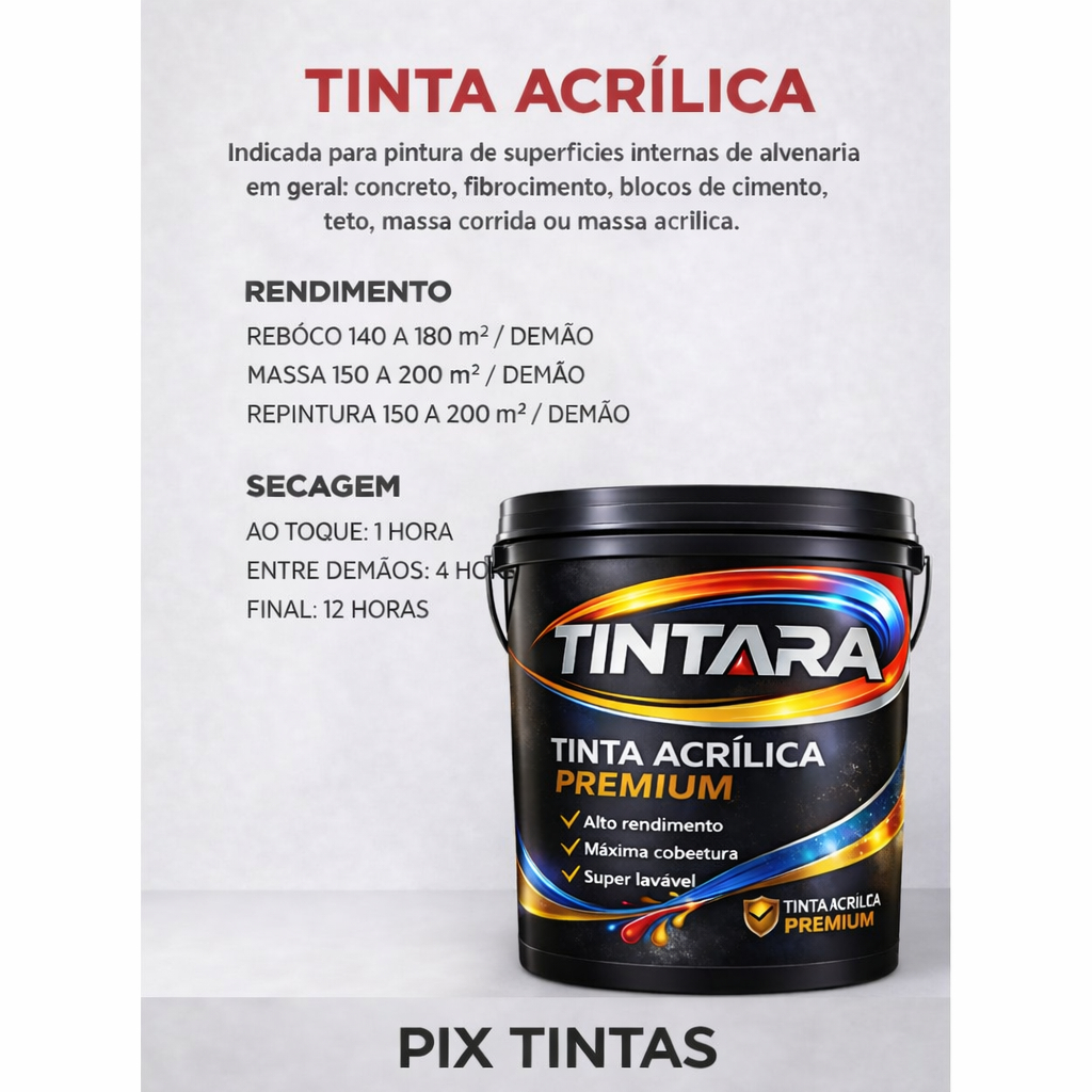 | Tinta Econômica Acrílica 5KG/1.5KG TINTARA – Acrílica Exterior e I... este produto | R$ 21,56 | 51% | 4.9/5 | 18 |