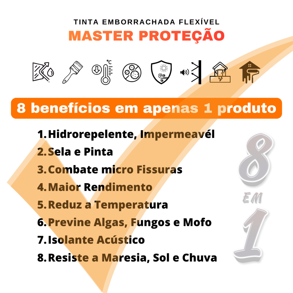 Tinta Emborrachada MasterFix - Master Proteção 🚚 𝗘𝗡𝗩𝗜𝗢 𝗜𝗠𝗘𝗗𝗜𝗔𝗧𝗢 𝗘𝗠 𝗔𝗧𝗘́ 𝟭𝟮𝗛 𝗨́𝗧𝗘𝗜𝗦 Sua fórmula avançada proporciona o máximo de desempenho, cobertura e rendimento em seu segmento. Benefícios como hidro repelência em sua fachada, proporcionando uma proteção diferenciada contra a absorção de água. Cobre microfissuras* e tem propriedade elástica, trazendo mais durabilidade em sua pintura. Boa resistência a intempéries, ação de maresia e umidade. Indicado para revitalização e proteção de fachadas e paredes externas. ✅ BENEFÍCIOS: ✔ HIDRO-REPELENTE; ✔ IMPERMEÁVEL; ✔ ANTI MOFO; ✔ ANTI FUNGO; ✔ ISOLAMENTO ACÚSTICO; ✔ FÁCIL DE LIMPAR; ✔ REDUZ A SENSSAÇÃO TÉRMICA (COR BRANCO); ✔ SELA E PINTA; ✔ RESISTENTE A MARESIA, SOL E CHUVA; ✔ COMBATE FISSURAS; ✅ MODO DE APLICAÇÃO: 1- Misturar/homogeneizar bem o produto com uma régua ou espátula (nunca com objetos cilíndricos). 2- Não faça repasses excessivos com o rolo e o recorte deve ser feito junto com as demãos. 3- Diluir o produto com água potável. 1ª demão pode ser diluída em até 20% - 2º e 3º demãos aplicar com 10% de diluição; ✅ DADOS DE APLICAÇÃO: ✅ DILUIÇÃO: ✔ Primeira demão: Até 20% de diluição com água potável, ✔ Demais demãos: 10% de diluição com água potável; ✅ SECAGEM ✔ Ao Toque: 2h ✔ Entre demãos: 4h ✔ Final: 12h ✅ FERRAMENTAS: ✔ Rolo de lã, trinchas ou Airless; ✅ RENDIMENTO: ✔ 20kg: de 80 a 150 m2 pronto ✔ 4kg: de 20 a 30m2 pronto ✔ O rendimento pode variar conforme condições da superfície, técnica de aplicação e espessura da camada; ✅ DEMÃOS: ✔ 3 demãos (dependendo do estado e cor da superfície, pode haver uma maior necessidade de demãos); ✅ PREPARAÇÃO DA SUPERFÍCIE ✔O bom preparo da superfície a ser pintada garante melhores resultados e durabilidade da sua pintura. Os passos abaixo são essenciais. De acordo com a norma ABNT NBR 13245-2011, a superfície a ser pintada deve estar, firme, coesa, limpa, sem graxa, gordura, sabão, umidade ou mofo. A superfície NÃO deve apresentar partes soltas ou mal aderidas. ✔ Fissuras são rachaduras até 0,3 mm. Validação pela norma ABNT NBR 13321 (Membrana Acrílica para Impermeabilização). ✅ Observação Importante: ✔ Verifique o lote para continuação de pintura, pode haver diferença entre a tonalidade entre lotes; ✔ A Diluição correta é indispensável para a aplicação. ✔ Necessário a aplicação de 3 demão, para eficiência e excelente resultado. ✅Qualquer dúvida estamos a disposição no chat.