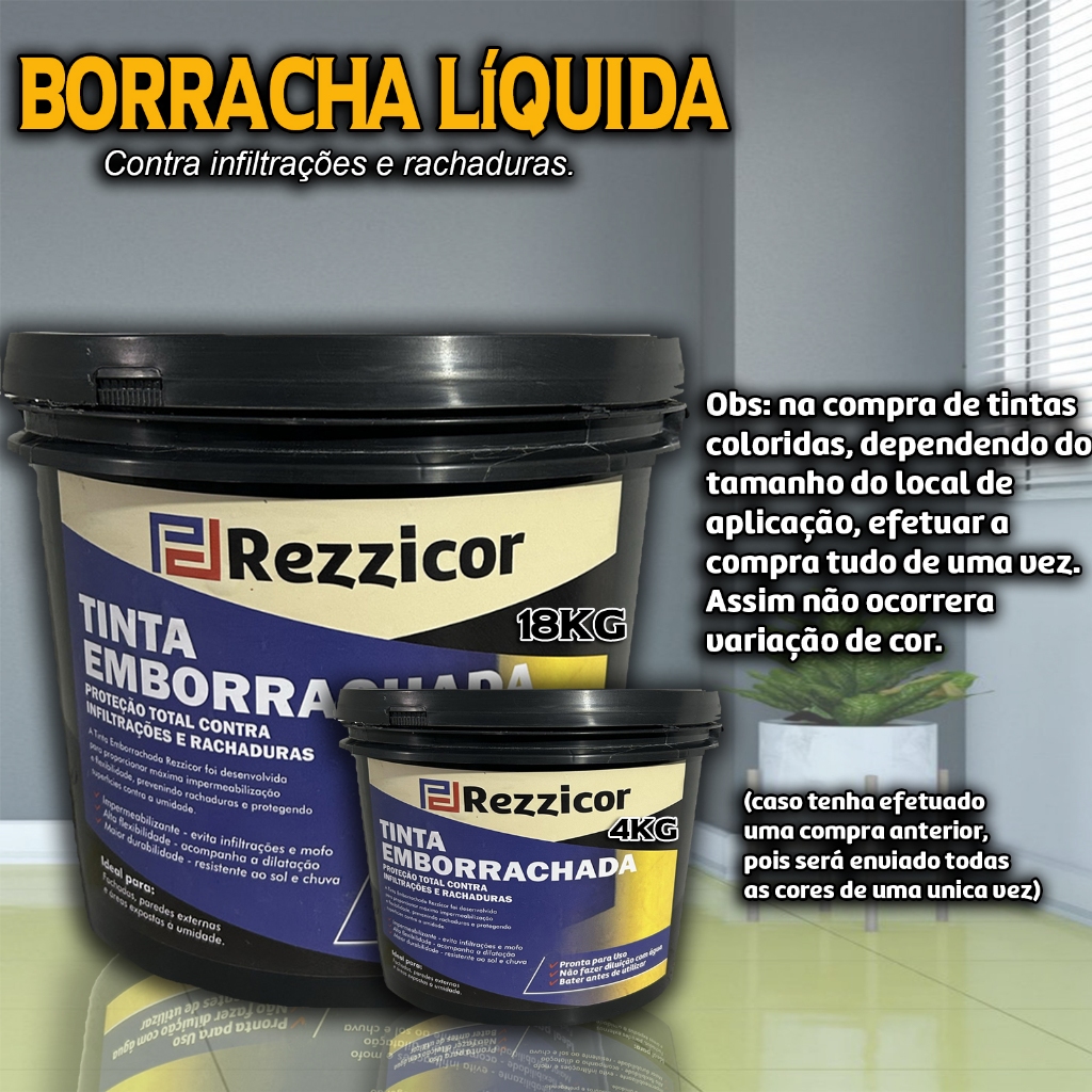 Diga adeus às infiltrações, rachaduras e paredes quentes! A Tinta Emborrachada RezziCor é a solução definitiva para a proteção, durabilidade e conforto térmico do seu imóvel. Disponível em embalagens de 4kg e 18kg, esta Tinta Emborrachada forma uma manta elástica e impermeável, ideal para áreas internas e externas, lajes e telhados. Principais Vantagens e Benefícios 1. Ação Térmica: Reduz temperaturas internas, proporcionando conforto e ajudando a economizar energia com ar-condicionado. 2. Cobre e Previne Fissuras: Sua elasticidade permite que a tinta Cobre Fissuras e acompanhe a movimentação da estrutura, prevenindo novas rachaduras e infiltrações. 3. Hidrorrepelente e Antimofo: Garante proteção total contra infiltrações e é resistente a mofo, algas e fungos. 4. Alta Resistência Externa: Resistente ao sol, chuva e maresia, com hidrorrepelência garantida. 5. Acabamento Lavável: Permite fácil limpeza e mantém o acabamento impecável por mais tempo. Especificações Técnicas: * Marca: RezziCor * Tipo: Tinta Acrílica Emborrachada * Embalagens: 4kg e 18kg * Rendimento (18kg): Até 130m² por demão. Tempos de Secagem: * Ao toque: 30 minutos * Entre demãos: 2 horas * Secagem total: 12 horas Selecione o tamanho (4kg ou 18kg) e a cor desejada nas variações do anúncio. Garanta a proteção Térmica e impermeável da Tinta Emborrachada RezziCor hoje mesmo!