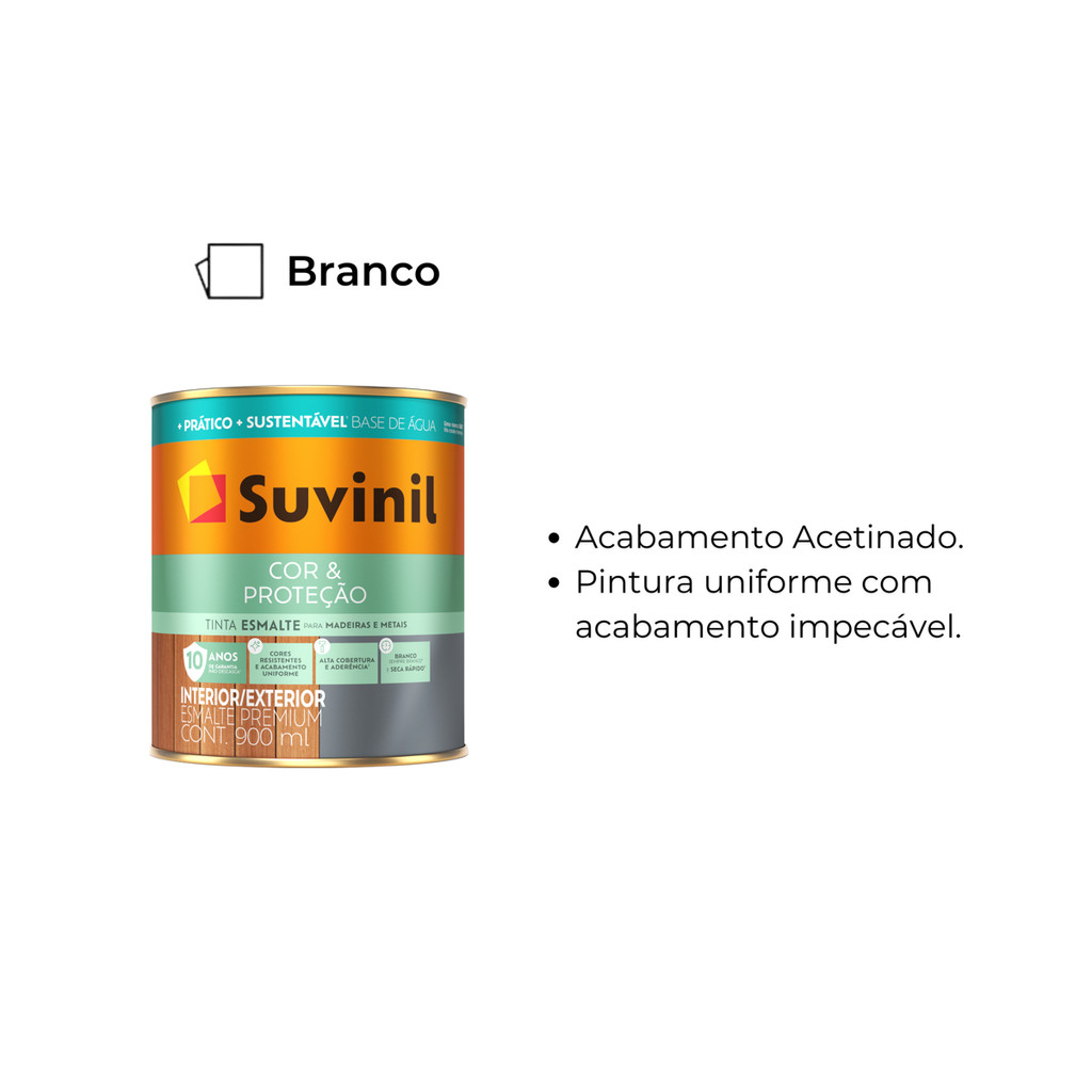 Tinta Esmalte Cor & Proteção Base Água Branco Acetinado 0,9L Suvinil