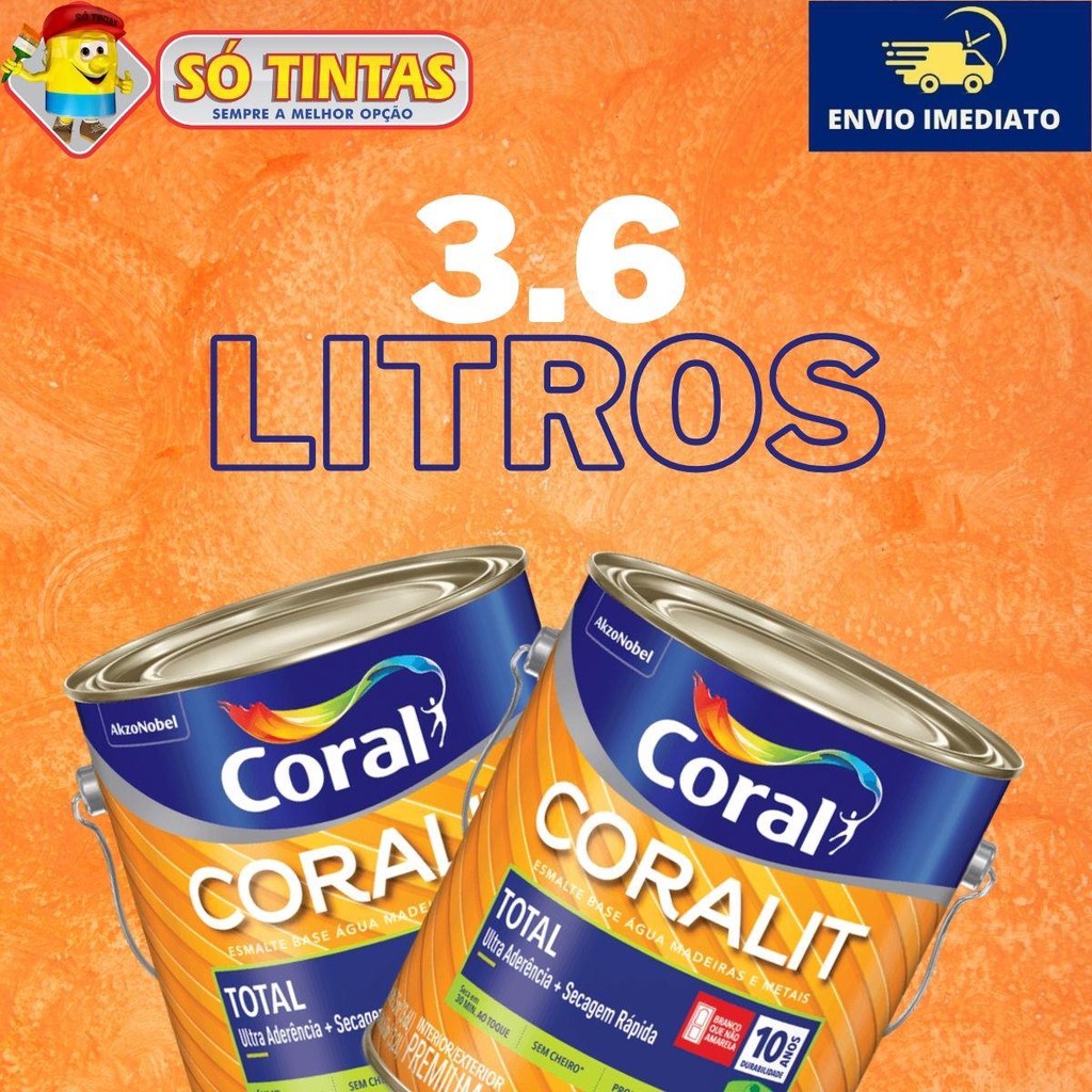 Imagine um ambiente renovado, com cores vibrantes e um acabamento impecável. O Coralit Total traz para você:•Branco que não Amarela: Mantenha a beleza e a luminosidade das suas superfícies, tanto internas quanto externas.•Durabilidade de 10 Anos: Invista uma vez e desfrute de resultados que resistem ao tempo.•Secagem Rápida: Volte a usar o espaço em apenas 30 minutos, sem a espera longa típica de outras tintas.Aplicar o Coralit Total é simples e direto:1.Prepare a Superfície: Limpe e lixe para uma aderência perfeita.2.Aplique com Facilidade: Use pincel, rolo ou spray; a escolha é sua!3.Espere Secar: Apenas 30 minutos para toque, e você pode aplicar a segunda demão em 2 horas.Benefícios•Ultra Aderência: Ideal para diversas superfícies como madeira, metal e PVC.•Sem Solventes: A solução perfeita para quem busca uma aplicação mais ecológica e segura.•Rendimento Impressionante: Até 75 m² por demão, garantindo que você faça mais com menos.Dados Técnicos•Tipo de Produto: Esmalte à base d'água•Marca: Coral•Linha: Coralit•Acabamento: Brilhante•Volume: 3,6L•Rendimento: Até 75 m² por demão•Número de Demãos Recomendada: 2•Secagem:oToque: 30 minutosoEntre demãos: 2 horasoSecagem final: 5 horas•Durabilidade: 10 anos•Ambientes Indicados: Interno e Externo•Diluição: Pronto para uso•Principais Atributos:oUltra aderênciaoSecagem rápidaoSem cheirooNão amarela em ambientes internos e externos•Superfícies de Aplicação: Madeiras, metais ferrosos, alumínio, galvanizados, PVCAplicação:Preparação da Superfície1.Limpeza: Certifique-se de que a superfície esteja limpa, seca e livre de poeira, óleo ou sujeira.2.Reparos: Se houver buracos ou imperfeições, faça os reparos necessários com massa para madeira ou massa corrida.3.Lixamento: Lixe levemente a superfície para melhorar a aderência do esmalte. Remova a poeira resultante do lixamento.Aplicação do Esmalte1.Mistura: Caso necessário, misture bem o esmalte antes de usar.2.Ferramentas: Use pincel, rolo ou spray, dependendo da área a ser pintada.3.Primeira Demão: Aplique a primeira demão uniformemente, evitando excessos. Deixe secar por cerca de 2 horas.4.Segunda Demão: Após a secagem da primeira demão, aplique a segunda demão, seguindo o mesmo método.5.Secagem Final: Após a aplicação da segunda demão, aguarde cerca de 5 horas para secagem completa.Principais perguntas:Acompanha nota fiscal? Sim, todos os nossos produtos são enviados com nota fiscal.O envio é por Correios? Pode ser enviado por Correios ou por transportadora privada, isso vai depender da disponibilidade das transportadoras que atendem o seu endereço.Porque não posso comprar mais de 4 unidades no mesmo pedido? Infelizmente há uma limitação por parte das transportadoras. Elas enviam apenas 4 unidades em cada pedido devido às dimensões e peso do pacote. Para mais unidades, você vai precisar fazer mais de um pedido, respeitando o limite máximo de 4 por pedido.Só Tintas, sempre a melhor opção.Somos a maior rede de lojas de tintas no estado do Rio de Janeiro.Desde 1977, a Só Tintas atua no Rio de Janeiro oferecendo os melhores produtos e soluções em pintura imobiliária, automotiva e industrial. Somos uma empresa familiar que começou em Teresópolis e hoje temos mais de 30 lojas físicas. Trabalhamos de forma ética e transparente, com o principal objetivo de proporcionar aos nossos clientes um atendimento de excelência, provendo as melhores soluções. Nossa missão é levar cor para a vida das pessoas. Por isso a Só Tintas é Sempre a Melhor Opção