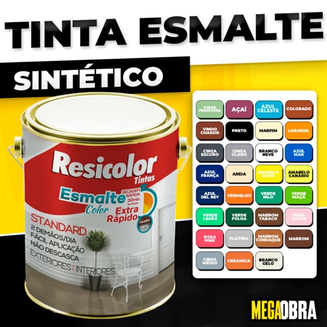| Tinta Esmalte Sintético 900ML 3,6L Cores Diversas Resicolor este produto | R$ 35,90 | 49% | 4.8/5 | 172 |