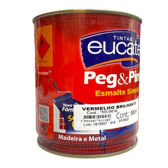 Tinta esmalte Sintético Vermelho vivo Brilhante Seca Rápido 900Ml - Eucatex
