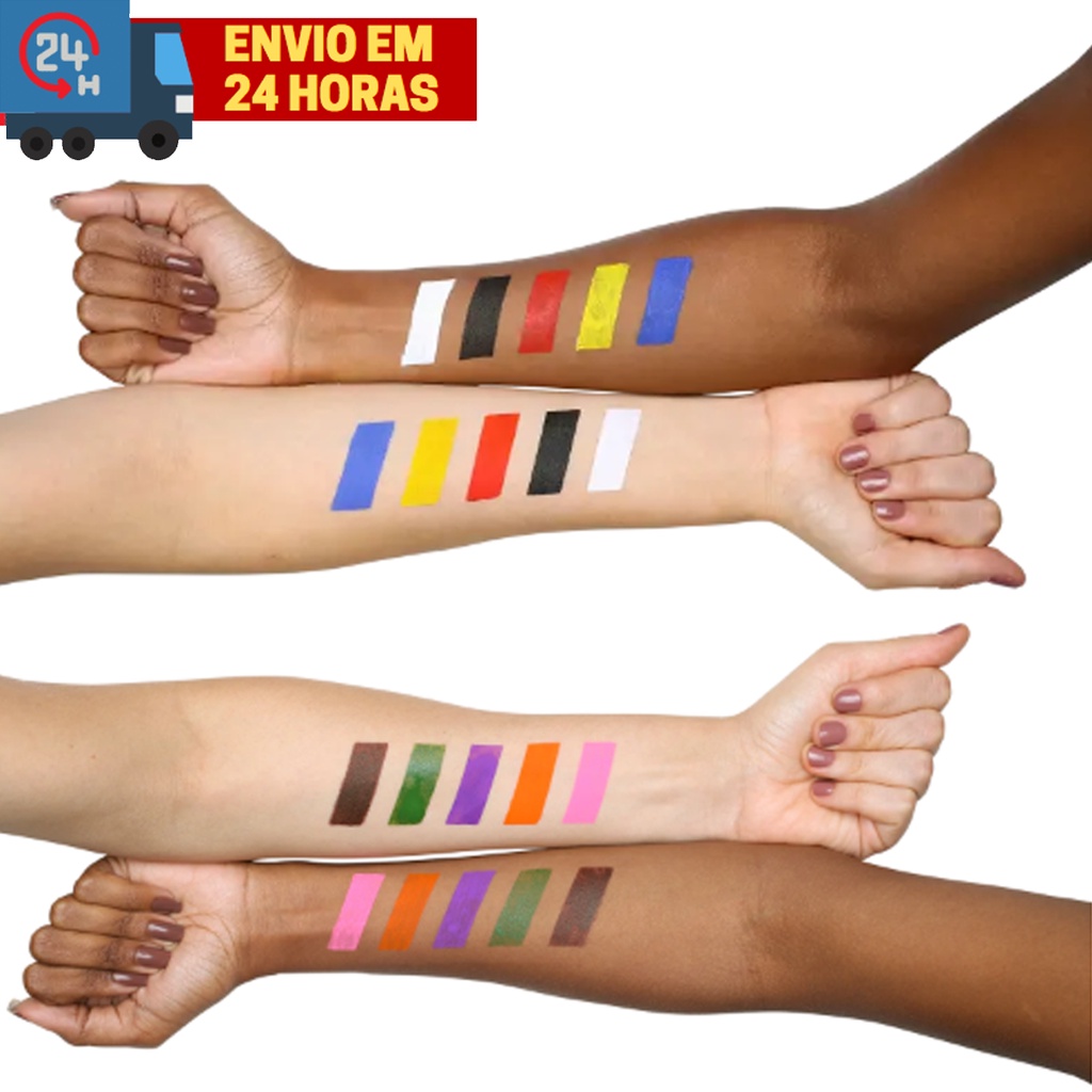 🥇 Produto à Pronta Entrega 🚛 (Enviamos) sua compra em até 24h 🔥O ENVIO MAIS RÁPIDO DA SHOPEE! PRODUTO NO BRASIL!🔥 TINTA FACIAL CREMOSA A tinta facial cremosa é a base de vaselina, o que a torna uma maquiagem de alta performance pois não escorre com suor. É de fácil aplicação e para maior fixação e secagem utilize pó compacto translúcido ou sombras da mesma cor da tinta. São indicadas para eventos infantis, temáticos, festas à fantasia, apresentações escolares, pintura facial, corporal, gestacional e muito mais!!! Contem: 3, 5 ou 10 Cores conforme compra. Envio Imediato. Produto Original, não seja enganado.