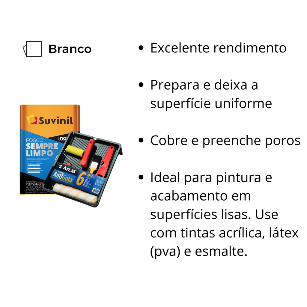 Tinta Fosco Sempre Limpo Branco Neve 18L + Kit Pint 6 Pçs Suvinil