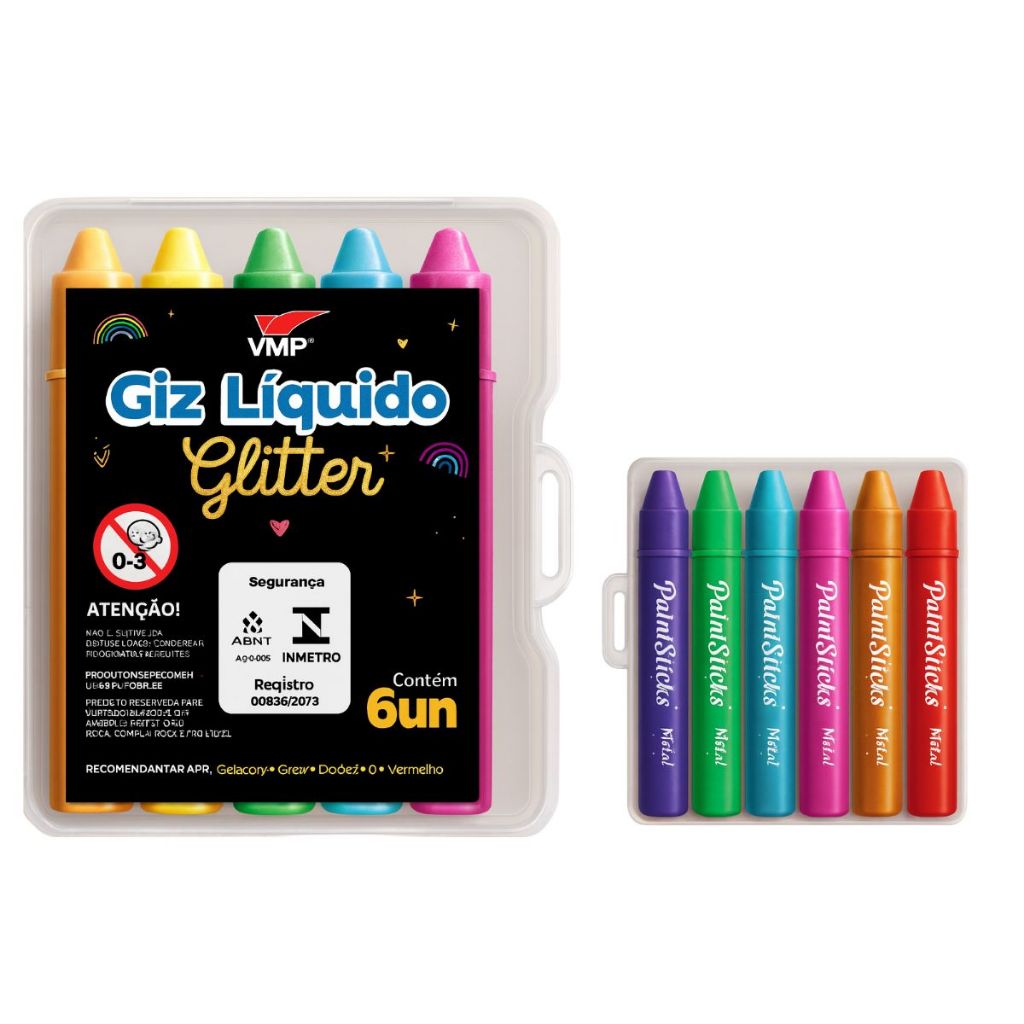 Tinta Guache Em Bastão Glitter 6 Cores Escolar 6 Tons Clássicos Lavável Tinta Para Criança VMP