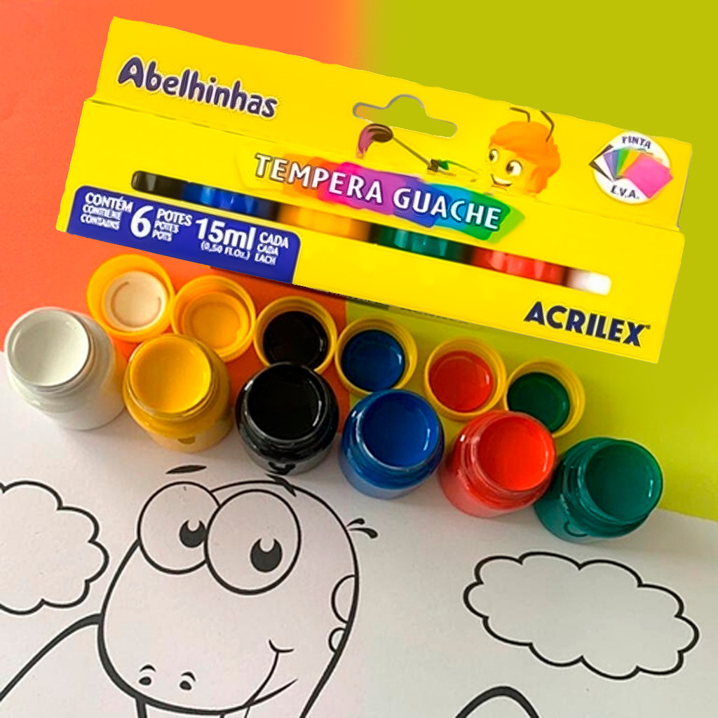 Tinta Guache Pintura 6 Cores 15ml Acrilex Escolar Trabalho Criança
