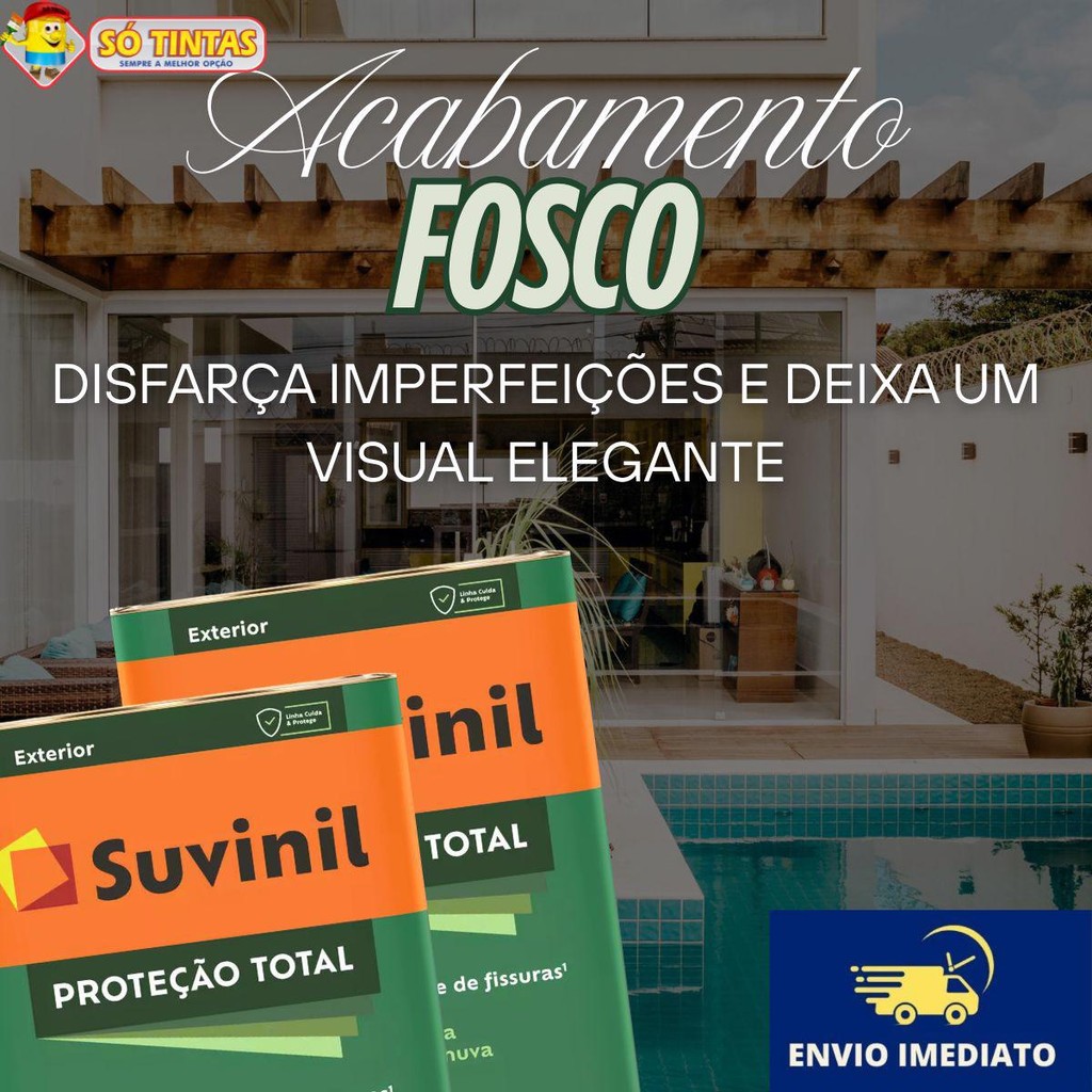 A aplicação da Suvinil Proteção Total é simples e eficiente, ideal tanto para primeira pintura quanto para repintura de fachadas externas. Siga o passo a passo e garanta o máximo de performance e durabilidade: Preparação da Superfície: 1.Limpe bem a área para remover poeira, gordura, mofo e partes soltas. 2.Corrija imperfeições com massa apropriada (recomenda-se Suvinil Massa Acrílica para áreas externas). 3.Certifique-se de que a superfície esteja firme, seca, limpa e curada antes da pintura. Superfícies Indicadas: ? Reboco Concreto Bloco de concreto Fibrocimento Sobre massa acrílica Suvinil Dados Técnicos: • Tipo: Tinta acrílica fosca para fachadas externas • Acabamento: Fosco (disfarça imperfeições) • Indicação: Áreas externas – primeira pintura e repintura • Superfícies: Reboco, concreto, bloco de concreto, fibrocimento e massa acrílica • Diluição: •Rolo/pincel: até 30% na 1ª demão, até 20% nas demais •Pistola airless: até 10% • Aplicação: Rolo de lã, pincel ou pistola airless • Demãos: 2 a 3 • Secagem: •Ao toque: 2h •Entre demãos: 4h •Final: 12h • Rendimento (17L): até 80 m² acabados • Durabilidade: até 8 anos • Resistência: Sol, chuva, maresia, mofo, fungos e infiltrações • Odor: Suave Tinta Suvinil Proteção Total – Fachadas externas impecáveis por até 8 anos Já pensou em ter uma fachada que resiste ao sol escaldante, à chuva forte, à maresia e à umidade, tudo isso sem perder a beleza da cor e sem dores de cabeça com manutenção constante? Com a Tinta Suvinil Proteção Total, sua casa ganha um escudo invisível contra as agressões do tempo, mantendo a estética impecável, com acabamento fosco que disfarça imperfeições e valoriza cada detalhe da sua fachada. Nada mais frustrante do que investir em uma pintura e vê-la deteriorar em pouco tempo: bolhas, mofo, infiltrações e manchas que comprometem a beleza da sua casa. Pior ainda quando isso acontece na fachada, o cartão de visitas do seu lar. Não deixe que o clima acabe com o visual e a estrutura da sua casa. A Tinta Suvinil Proteção Total foi criada especialmente para áreas externas. Sua fórmula 100% acrílica forma uma película impermeável que protege contra sol, chuva, maresia, poluição, mofo e fungos. Além disso, ela tem secagem rápida, fácil aplicação, e um alto rendimento que garante economia e eficiência na obra. Ideal para superfícies de concreto, reboco, blocos de cimento, fibrocimento e até sobre massa acrílica. Principais Benefícios da Suvinil Proteção Total: Impermeabiliza e protege – bloqueia infiltrações e evita mofo, bolor e desgaste precoce. Acabamento fosco sofisticado – disfarça imperfeições e deixa um visual elegante. Durabilidade de até 8 anos – proteção garantida por muito mais tempo. Alta resistência – ideal para sol intenso, maresia, chuva e umidade. Rendimento excelente – cada lata de 17L cobre até 80m² acabados. Secagem rápida – ao toque em 2h, entre demãos em 4h e cura total em 12h. Fácil aplicação – mais agilidade na obra, menos retrabalho. Modo de Uso e Diluição: Indicação de uso: fachadas externas, primeira pintura ou repintura. Superfícies compatíveis: bloco de concreto, reboco, concreto, fibrocimento e sobre Suvinil Massa Acrílica. Diluição recomendada: com água potável – siga as instruções da embalagem para melhor performance. A fachada da sua casa merece o melhor. Aposte na Suvinil Proteção Total e transforme sua parede em uma barreira contra o tempo! Garanta agora a sua Suvinil Proteção Total e conquiste uma fachada linda, resistente e protegida por até 8 anos.