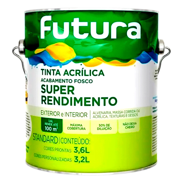 | Tinta Látex Anti Mofo Parede Standard Futura 3,6l TODAS AS CORES (N... este produto | R$ 79,90 | 11% | 4.9/5 | 36 |