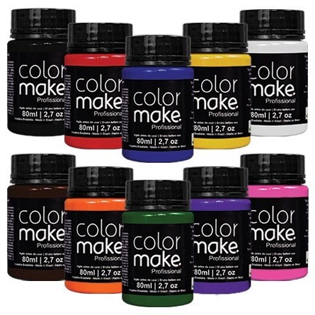 Tinta Líquida Para Maquiagem Facial e Corporal Da Colormake 80ml As tintas líquidas Color make são a base de água, possuem secagem rápida e total. Próprios para a pele são ideais para serem utilizadas em festas temáticas, fantasias, desfiles, apresentações de dança, eventos em geral. MODO DE USO: Aplique diretamente na pele com a ponta dos dedos ou com auxílio de pincel ou esponja. COMO REMOVER: Utilize água e sabonete ou Demaquilante.