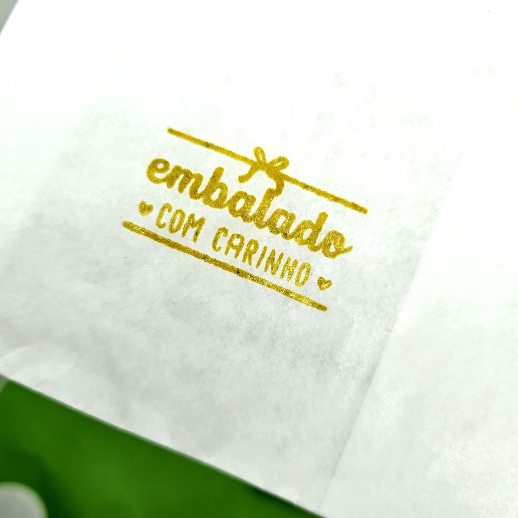 Tinta para carimbo – Dourada + Almofada N°3 para papel BRANCO. 1 – Frasco com 30 ml 1 – Carimbeira N°3 Agitem bem antes de usar.