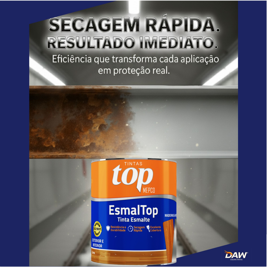 TINTA ANTIFERRUGEM 900ML FUNDO E ACABAMENTO FOSCO 2 EM 1 Produto desenvolvido para proteger e recuperar superfícies metálicas, podendo ser aplicado direto na ferrugem desde que esteja firme e sem partes soltas. Possui dupla função, atuando como fundo anticorrosivo e acabamento fosco ao mesmo tempo. Ideal para pequenos projetos, retoques e manutenção, com secagem rápida e excelente rendimento. VANTAGENS DO PRODUTO - 2 em 1 fundo anticorrosivo e acabamento fosco - Pode aplicar direto na ferrugem após limpeza leve - Forma uma camada resistente a agua e ao tempo - Secagem rápida ao toque em 30 minutos - Fácil de aplicar inclusive para quem não tem experiência - Pode ser a demão final no acabamento fosco INDICADO PARA - Ferro e estruturas metálicas em geral - Portões, grades, portas metálicas, pecas e manutenção em geral INFORMAÇÕES TÉCNICAS - Produto: Fundo Anticorrosivo / Primer Zarcão (Dupla Função) - Volume: 900ml - Acabamento: Fosco - Função: Fundo anticorrosivo e acabamento - Rendimento: Até 12m2 por demão - Base: Solvente - Secagem ao toque: 30 minutos - Intervalo entre demãos: 1 hora - Cura total: 6 horas - Diluição: Produto pronto para uso. Se necessário diluir ate 10% com solvente comum - Limpeza das ferramentas com solvente comum MODO DE USO - Fazer apenas uma limpeza leve para remover ferrugem solta poeira e oleosidade - Não é necessário lixamento pesado - Aplicar com pincel rolo ou pistola - Para acabamento brilhante aplicar esmalte sintético por cima - Para acabamento fosco este produto já e a demão final IMPORTANTE - Aplicar somente sobre ferrugem firme e superfície limpa - Para acabamento brilhante e obrigatório aplicar esmalte por cima CONTEUDO DA EMBALAGEM 1 lata de tinta antiferrugem 900ml Produto com nota fiscal e garantia de fábrica.