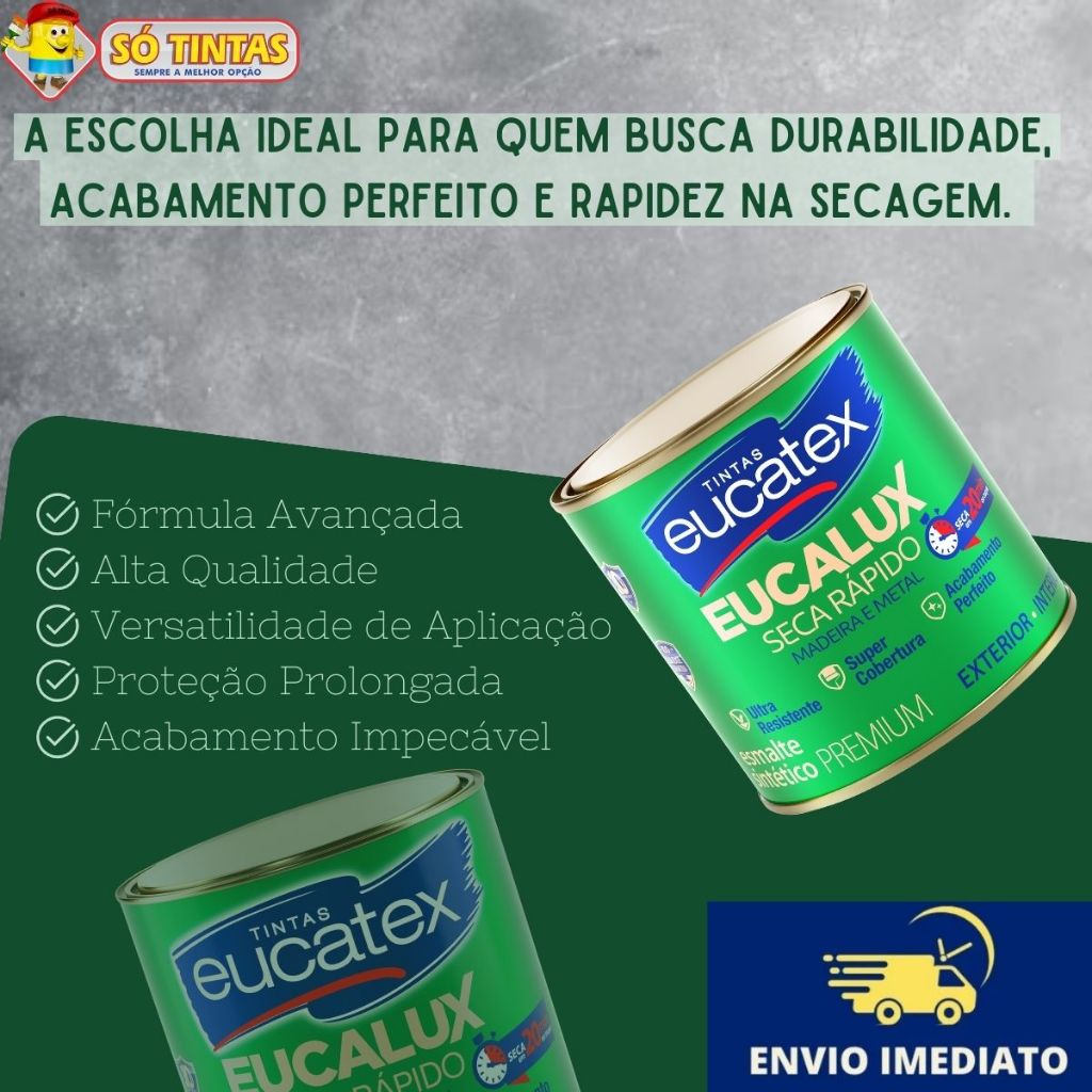 | Tinta para Madeira e Metal Esmalte Sintético Fosco Premium Eucalux ... este produto | R$ 20,00 | 46% | 4.2/5 | 2 |