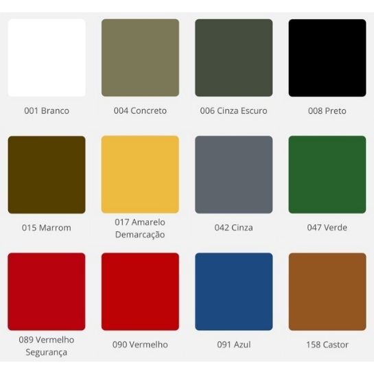 Tinta para Piso Eucatex Extra Piso Acrílico Premium Cinza Escuro Fosco 18L Características Principais: Marca: Eucatex Cor: Cinza Escuro Tipo: Tinta acrílica para pisos Litragem: 18L Acabamento: Fosco Informações Adicionais: Superfícies recomendadas: Pisos cimentícios, quadras esportivas, áreas de lazer, telhas de fibrocimento, cerâmicas porosas, pisos comerciais e estacionamentos. Composição: Base água Área de uso: Interno e externo Rendimento: Cores: Até 120 m² (18 L) Diluição: Rolo, pincel e trincha: 1ª demão com 30%, demais com 20% Pistola airless: até 40% Demãos: 2 a 3 demãos Diluição com água Secagem: Ao toque: 1 hora Entre demãos: 4 horas Final: 12 horas Tráfego de pessoas: 48 horas Tráfego de veículos: 72 horas Fornecedor: Eucatex