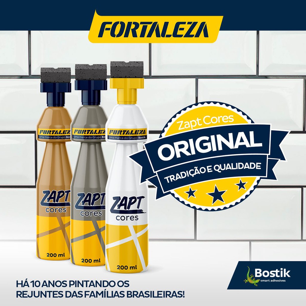 ZAPT TINTA PARA REJUNTE VARIAS CORES 200ML >>>ESCOLHA A COR NA TABELA DO ANÚNCIO<<< Troque ou renove a cor do rejuntamento em minutos. Você pode usá-lo em cores próximas as do rejuntamento antigo ou modificar totalmente, trocando por uma cor diferente e dando vida nova ao rejunte. Rendimento de 20 a 25 metros quadrados, variando de acordo com a espessura do rejunte e quantidade de demão para alcançar a tonalidade desejada. SUPERFÍCIES DE APLICAÇÃO • Rejuntes de pisos e azulejos à base de cimento entre peças cerâmicas ou revestimento natural. • Áreas internas e externas, inclusive fachadas, piscinas e saunas. O Zapt Cores Fortaleza não deve ser utilizado: • Em estufas, lareiras, fornos, churrasqueiras e câmaras frigoríficas. • Em superfícies com cera, resina, manta, tinta, óleo ou textura. • Sobre superfícies de epóxi. PREPARAÇÃO DA SUPERFÍCIE • A superfície deve estar firme, seca, isenta de poeira, partículas soltas, resíduos orgânicos e ferrosos, gordura, graxa, mofo ou sabão. • Rejuntes com gordura, graxa ou mofo: lave a superfície com uma solução de água, detergente neutro e água sanitária. Escove, enxágue e aguarde a secagem. • Rejuntes encerados, pintados, com resinas, sobressalentes ou com camada de resíduo incrustada em sua superfície, como box de banheiros e pias: lixe suavemente com a utilização de lixa nº 120 para remover a película superficial ou regularizá-los. Remover o resíduo com um pano levemente úmido. • Piscinas: 24 horas antes da aplicação do Zapt Cores Fortaleza, lave a superfície com uma solução de água, sabão e água sanitária. Escove, enxágue e aguarde a secagem. • Falhas no rejuntamento antigo deverão ser preenchidas. Sugerimos utilizar o Rejunta Acrílico Fortaleza. Após 24 horas, aplique Zapt Cores Fortaleza. • Revestimentos especiais como pedras naturais, porcelanatos, cerâmicas foscas ou porosas, com saliências ou reentrâncias, ou com detalhes em ouro ou prata, devem ser protegidos com fita crepe durante a aplicação, evitando a impregnação do Zapt Cores Fortaleza sobre a superfície das peças. Especificação: Área de Aplicação: Interna e Externa Ambientes Externos Piscinas, Saunas e Garagens Dimensões da Embalagem (Largura X Altura X Profundidade): 17 x 26 x 6 cm Peso do produto: 0,4 kg Validade 2 anos