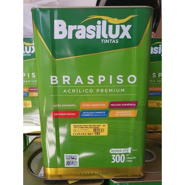 NO MAXIMO 01 ITEM POR COMPRA PARA NÃO ULTRAPASSAR O PESO DO MERCADO DE ENVIOS. Descrição:Braspiso é uma tinta acrílica acetinada premium especial para pisos, com excelenteresistência ao desgaste provocado por atrito, tráfego de pessoas, carros e ao intemperismo.Produto de fácil aplicação e secagem rápida, boa cobertura, aderência, possui excelentealastramento, ótima resistência às intempéries, apresentando filme de elevada resistência àabrasão, o que evita o desgaste prematuro pelo pisar constante das pessoas.Apresenta película lavável e de grande durabilidade. Atende as normas ABNT NBR: 15.079/19 e 11.702/2019 – Tipo 4.5.14Disponível nas embalagens de: Galão(3.600ml) e Lata (18 litros) Uso e Aplicações:Indicado para aplicação em superfícies externas e internas, principalmente para áreas delazer, escadas, varandas, quadras poliesportivas e outras superfícies de concreto rústico ouainda para repintura. Podendo ser aplicado em fachadas, tijolos aparentes, alvenaria,paredes, quadras poliesportivas, calçadas, estacionamentos, escadas, passarelas, garagens,pisos de cerâmica porosa, áreas industriais e pisos cimentados em geral.Não aplicar em superfícies esmaltadas e/ou polidas. Diluente/Catálise: 15 – 20 % com água potável especificamente.Viscosidade à25ºC CF4: 80 a 100 K.U.Formas deAplicação: Rolo de lã ou espuma, pincel, trincha ou brocha, pistola convencional, airless. Demão(s)recomendada(s):Aplicar 02 a 03 demãos com intervalo de 4 - 6 horas entre as aplicações.Normalmente com duas a três demãos consegue-se um excelente resultado, mas deve-selevar em consideração o tipo de superfície aplicada e a cor escolhida, podendo exigir maisdemãos para atingir o resultado esperado.Aguardar de 4 a 6 horas de intervalos entre demãos. Para cobertura perfeita e uniforme da superfície, dependendo das condições de porosidade,uniformidade, textura, contraste e cor, poderão ser necessário maior número de demãos.Secagem (25ºC)Ao toque: 40 a 60 minutosManuseio: 02 a 04 horas Entre demãos: aguardar de 4 a 6 horas, de acordo com as condições meteorológicas. Preparo de superfície: A superfície a ser pintada deverá estar sempre seca isenta decontaminantes como, poeira, graxa, óleo, etc. Não deve apresentar partes soltas ou maladeridas. (NBR 13245/11). Superfícies com brilho devem ser lixadas antes e limpas pararemover a poeira. Modo de preparo: Misturar com agitação constante até perfeita homogeneização, diluir oproduto com água potável, ajustando a viscosidade do produto em função do equipamentode aplicação.Aplicação: aplicar a 1ª demão diluída entre 15 a 20% de água potável para melhor