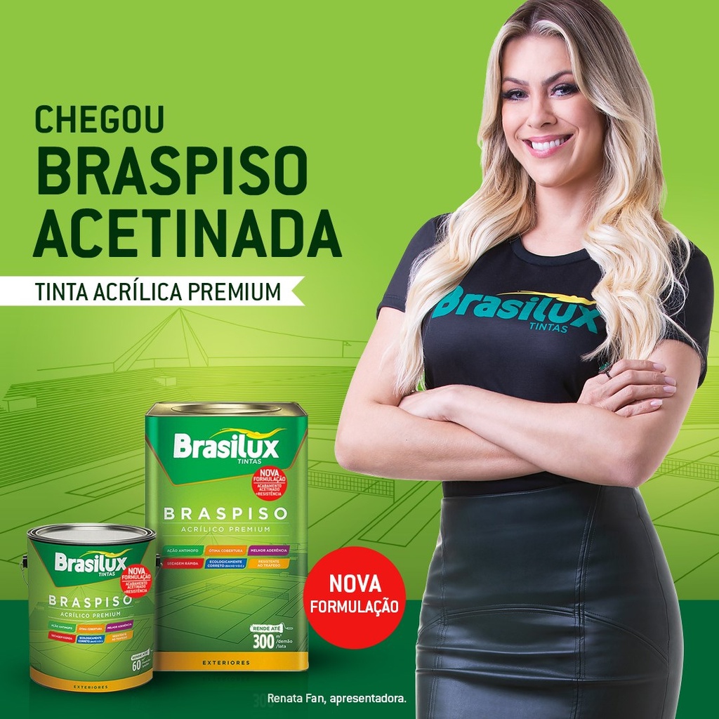 Braspiso é uma tinta acrílica acetinada premium especial para pisos, com excelente resistência ao desgaste provocado por atrito, tráfego de pessoas, carros e ao intemperismo. Produto de fácil aplicação e secagem rápida, boa cobertura, aderência, possui excelente alastramento, ótima resistência às intempéries, apresentando filme de elevada resistência à abrasão, o que evita o desgaste prematuro pelo pisar constante das pessoas. Apresenta película lavável e de grande durabilidade. Atende as normas ABNT NBR: 15.079/19 e 11.702/2019 – Tipo 4.5.14 Disponível nas embalagens de: Galão(3.600ml) e Lata (18 litros) Uso e Aplicações: Indicado para aplicação em superfícies externas e internas, principalmente para áreas de lazer, escadas, varandas, quadras poliesportivas e outras superfícies de concreto rústico ou ainda para repintura. Podendo ser aplicado em fachadas, tijolos aparentes, alvenaria, paredes, quadras poliesportivas, calçadas, estacionamentos, escadas, passarelas, garagens, pisos de cerâmica porosa, áreas industriais e pisos cimentados em geral. Não aplicar em superfícies esmaltadas e/ou polidas. Formas de Aplicação: Rolo de lã ou espuma, pincel, trincha ou brocha, pistola convencional, airless. Demão(s) recomendada(s): Aplicar 02 a 03 demãos com intervalo de 4 - 6 horas entre as aplicações. Normalmente com duas a três demãos consegue-se um excelente resultado, mas deve-se levar em consideração o tipo de superfície aplicada e a cor escolhida, podendo exigir mais demãos para atingir o resultado esperado. Aguardar de 4 a 6 horas de intervalos entre demãos. Para cobertura perfeita e uniforme da superfície, dependendo das condições de porosidade, uniformidade, textura, contraste e cor, poderão ser necessário maior número de demãos. Secagem (25ºC) Ao toque: 40 a 60 minutos Manuseio: 02 a 04 horas Entre demãos: aguardar de 4 a 6 horas, de acordo com as condições meteorológicas.