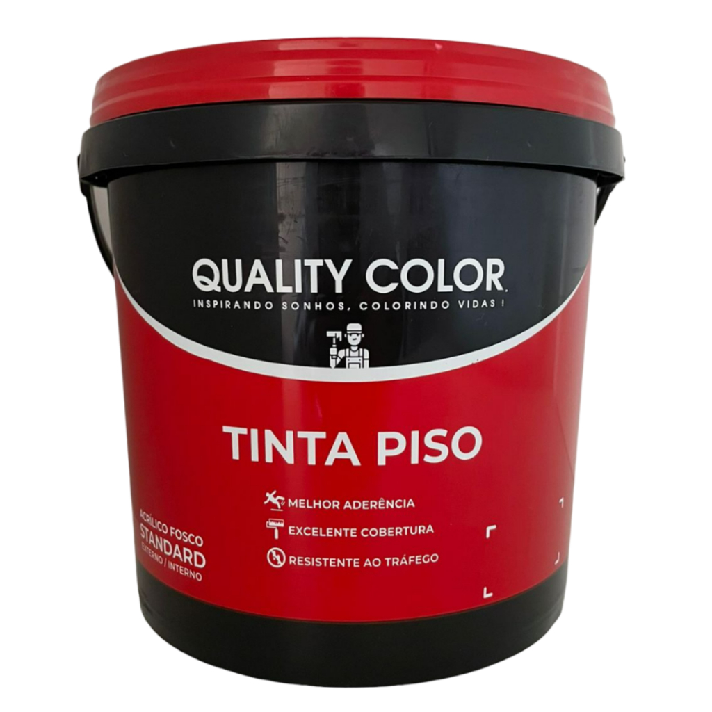 Tinta Piso Quality Color Alto Rendimento Modo de Uso- Para um Resultado Excelente .Diluição de 20% .Uso um Rolo de Qualidade .Faça os Rodapés (duas Demão Primeiro) -E siga com o resto da parede - **Aplicação:** - Indicada para pisos, evitando problemas de reparo precoce na pintura e garantindo mais beleza ao ambiente. - Garante uma boa pintura prática e econômica para renovar o visual. - **Descrição do Produto:** - Desenvolvida com ótimo acabamento e durabilidade. - Grande resistência ao tráfego de pessoas e melhor aderência para evitar acidentes. - Indicada para aplicações internas e externas. - **Dados Técnicos:** - Resistente ao tráfego de pessoas. - Melhor aderência. - Excelente cobertura. - Tinta piso 3,2L. - Não diluir com produtos químicos. - Rendimento estimado: m² pode 25M2 variar de acordo com a diluição utilizada. - Secagem: 30 minutos ao toque, 4 horas entre demãos, 48 horas para tráfego de pessoas, 72 horas para tráfego de veículos.
