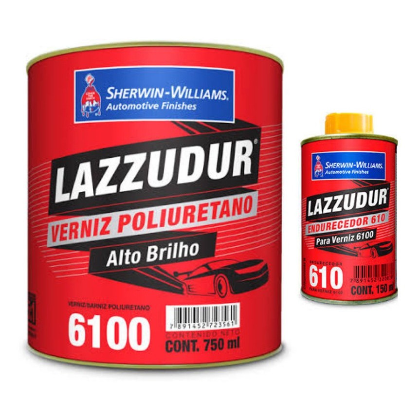 Tinta Automotiva Poliester Prata Lunar + Verniz 6100 Item 1- Verniz Automotivo 6100 Lazzuril 900ml Indicado Para aplicação sobre Lazzudur Base Poliéster, Ultrabase e Base Poliéster Médio Sólidos, complementando o sistema dupla camada. Proporciona alto brilho, excelente resistência ao intemperismo e secagem rápida. Modo de Usar: 5 Partes em volume de Verniz PU Rápido 6100. • 1 parte em volume de Endurecedor para Verniz PU Rápido 00610. Vida Útil da mistura (25ºC) é de 4 horas. Item 2- Tinta Automotiva Base Poliéster Lazzudur 900ml Indicado para pintura geral, retoques de veículos automotivos, produto fácil de usar e aplicar. Possui secagem rápida, excelente resistência às intempéries naturais e agentes químicos Sherwin Williams é uma das melhores marcas do mercado, tinta de excelente qualidade, cobertura excelente. Somos uma empresa especializada em tintas automotivas, temos sistema tintometrico, emitimos notas fiscais. Garantia do vendedor: 3 meses