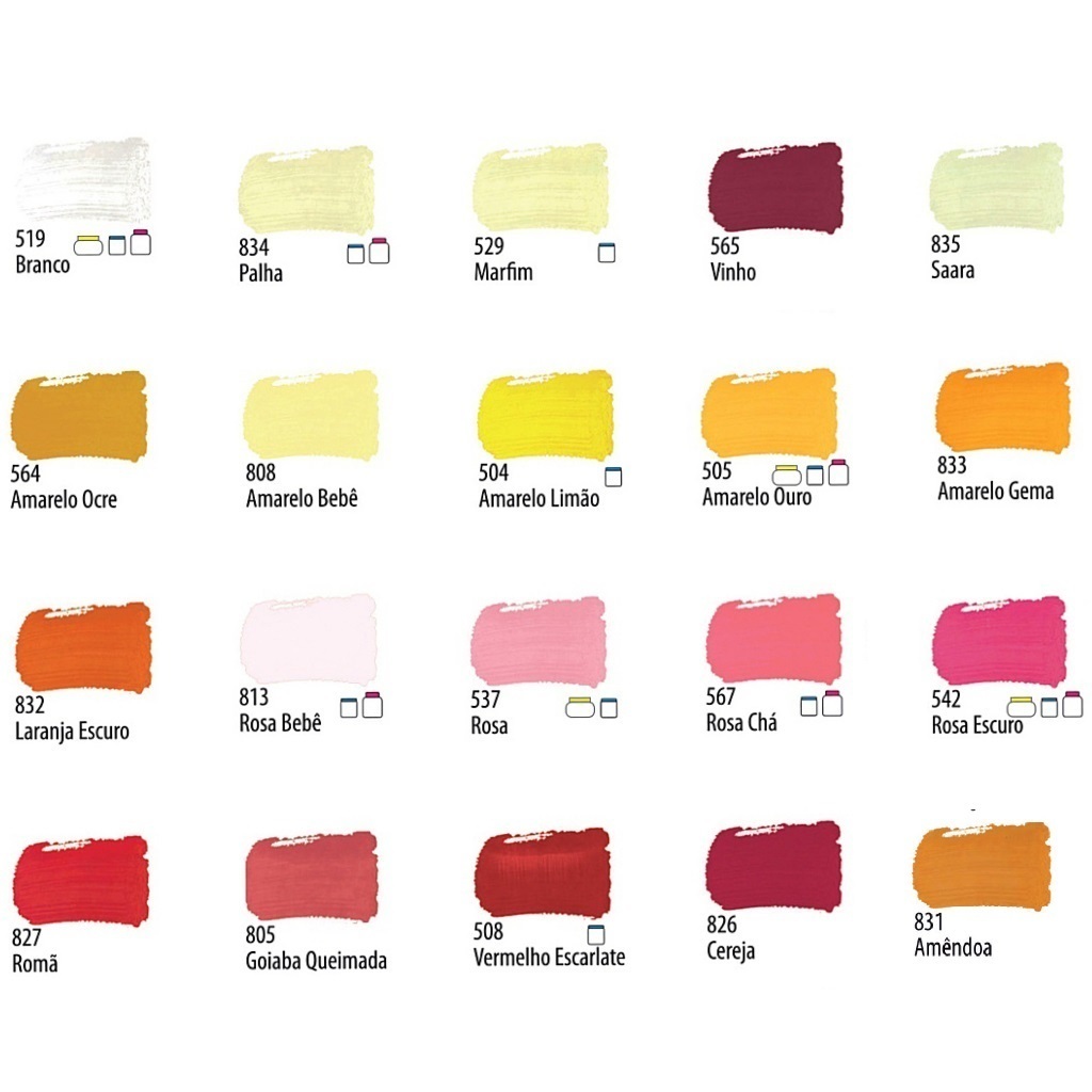 Kit Tinta PVA Fosca Artesanato 2 / 3 / 4 Tintas Acrilex 37ml ** Não precisa esperar Nós Perguntarmos, Já ENVIE AS CORES APÓS A COMPRA** ** Não precisa esperar Nós Perguntarmos, Já ENVIE AS CORES APÓS A COMPRA** **** Envie as Cores escolhidas no chat, caso não envie será enviado cores Sortidas **** Desenvolvida para trabalhos artísticos variados e trabalhos decorativos. A Tinta PVA para Artesanato Plástica é um importante instrumento para o desenvolvimento da criatividade, coordenação motora e percepção visual das cores. Apresenta um ótimo acabamento, ideal para trabalhos artesanais. Não é tóxica, é solúvel em água e disponível em 69 cores miscíveis entre si. Pode ser aplicada em papel, papel cartão, gesso, madeira, MDF e cerâmica. - CARACTERÍSTICAS: . A base de Látex P.V.A . Secagem rápida . Acabamento fosco . Pronta para uso Dicas: 1 - Não é necessário fazer preparação prévia, podendo-se aplicar o produto diretamente sobre a peça. 2 - Se quiser preparar a peça, poderá usar GOMA LACA INDIANA ou BASE ACRÍLICA PARA ARTESANATO, sendo que, esta última deverá estar bem diluída em água e esperar secagem completa para posterior aplicação da tinta P.V.A. 3 - Evite acelerar a secagem, porém se necessário, faça-o a distância de mais ou menos 30 cms. e em temperatura média. 4 - Para um melhor resultado, evite camadas espessas. Cores disponíveis para os Kits: *Envie as Cores escolhidas no chat, caso não envie será enviado cores Sortidas* 501 AZUL TURQUESA 503 AZUL CELESTE 504 AMARELO LIMAO 505 AMARELO OURO 506 CERAMICA 507 VERMELHO FOGO 508 VERMELHO ESCARLATE 510 VERDE FOLHA 511 VERDE BANDEIRA 513 VERDE MUSGO 515 CERÂMICA CLARA 516 VIOLETA 517 LARANJA 518 SALMÃO 519 BRANCO 520 PRETO 525 CAMURÇA 526 MARROM ESCURO 528 LILÁS 529 MARFIM 531 MARROM 535 AZUL MAR 536 AMARELO CADMIO 537 ROSA 538 AMARELO PELE 541 VERMELHO VIVO 542 ROSA ESCURO 543 AZUL ULTRAMAR 545 VERDE OLIVA 549 MAGENTA 551 SÉPIA 558 VERDE VIVO 564 AMARELO OCRE 565 VINHO 567 ROSA CHÁ 568 AZUL CERÚLEO 570 VERDE PISTACHE 571 VERDE ESMERALDA 573 OCRE OURO 574 CINZA LUNAR 577 TURQUESA 579 AZUL HORTÊNSIA 581 ROSA CICLAME 584 AZUL INVERNO 585 CAPUCCINO 587 LAVANDA 595 BORDEAUX 596 AZUL PETRÓLEO 802 VERDE MAÇÃ 805 GOIABA QUEIMADA 808 AMARELO BEBÊ 809 LILÁS BEBÊ 813 ROSA BEBÊ 814 CHOCOLATE 815 CASTANHO CLARO 817 AREIA 818 CAMURÇA QUEIMADO 819 CONCRETO 820 VERDE PRIMAVERA 821 VERDE ÁGUA 822 VERDE COUNTRY 823 AZUL PISCINA 824 AZUL SECO 825 AZUL COUNTRY 826 CEREJA 827 ROMÃ 828 ROSA ANTIGO 829 FLAMINGO 830 TERRACOTA 831 AMÊNDOA 832 LARANJA ESCURO 833 AMARELO GEMA 834 PALHA 835 SAARA 893 MINERAL 895 MELÃO 896 RÚSTICO 898 VERDE ALECRIM 915 ORQUÍDEA