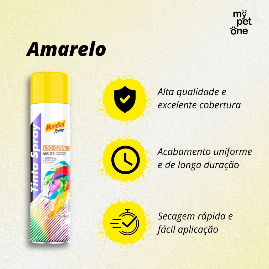 Tinta Spray 400ml Mundial Prime Uso Geral | Preto/Branco Fosco/Brilhante + Amarelo, Rosa, Verde