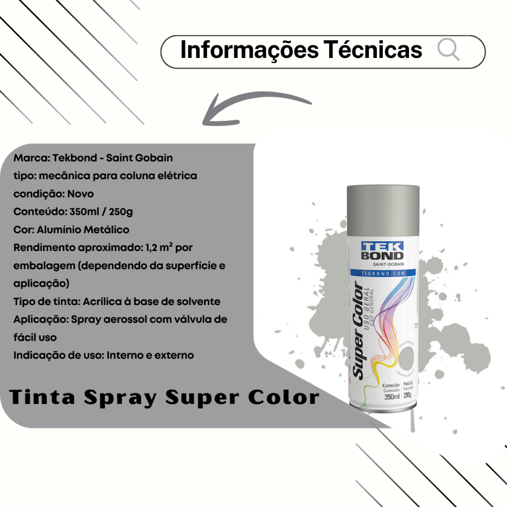 Tinta Spray Aerossol Aluminio Uso Geral 350ml 250g Tekbond