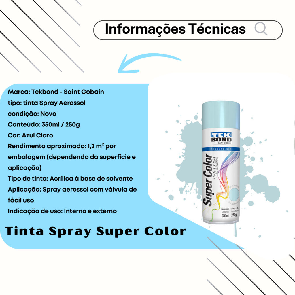 Tinta Spray Aerossol Azul Claro Uso Geral 350ml 250g Tekbond