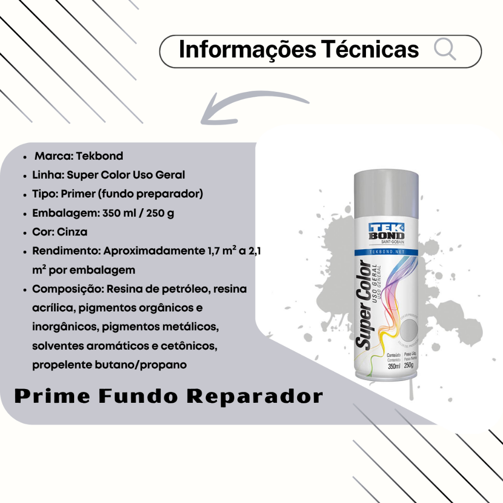 Tinta Spray Aerossol Primer Fundo Preparador Uso Geral 350ML 250G