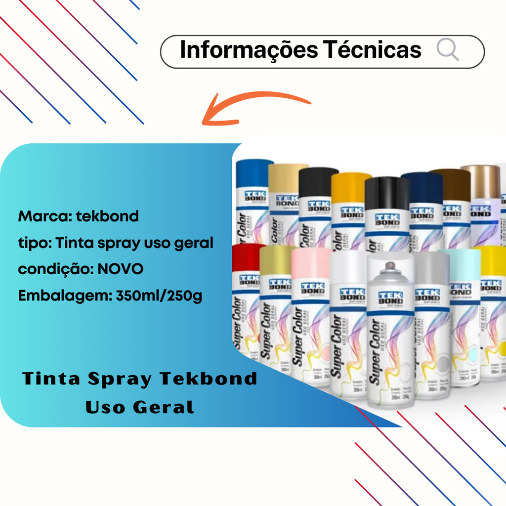 Tinta Spray Aerossol Super Color Tekbond Uso Geral 350ml/250g Cor a Escolher
